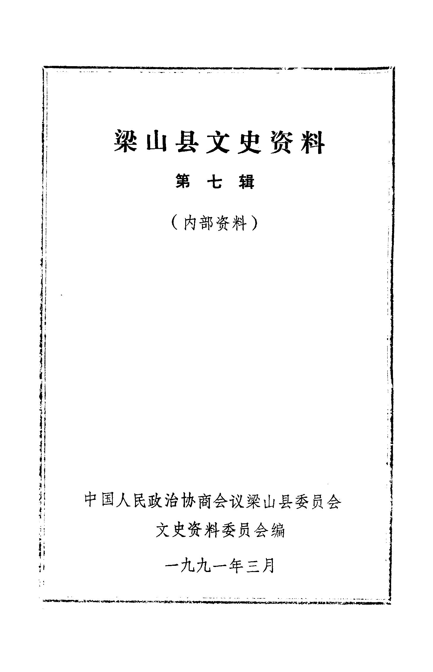 梁山縣文史資料第七輯_政協梁山縣委員會文史資料委員會