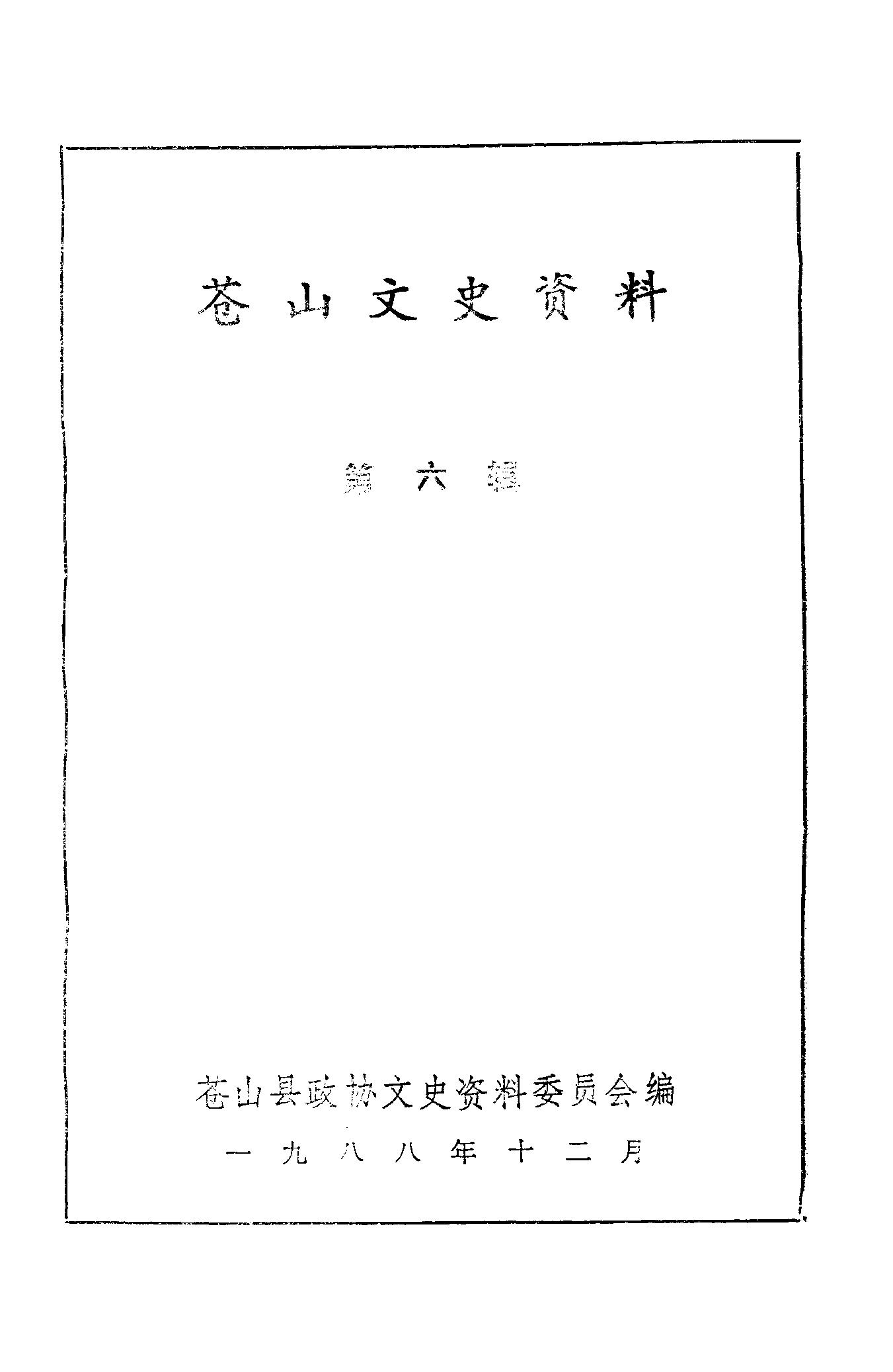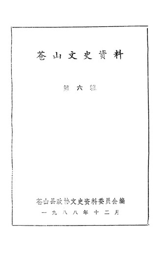 蒼山文史資料第六輯_蒼山縣政協文史資料委員會
