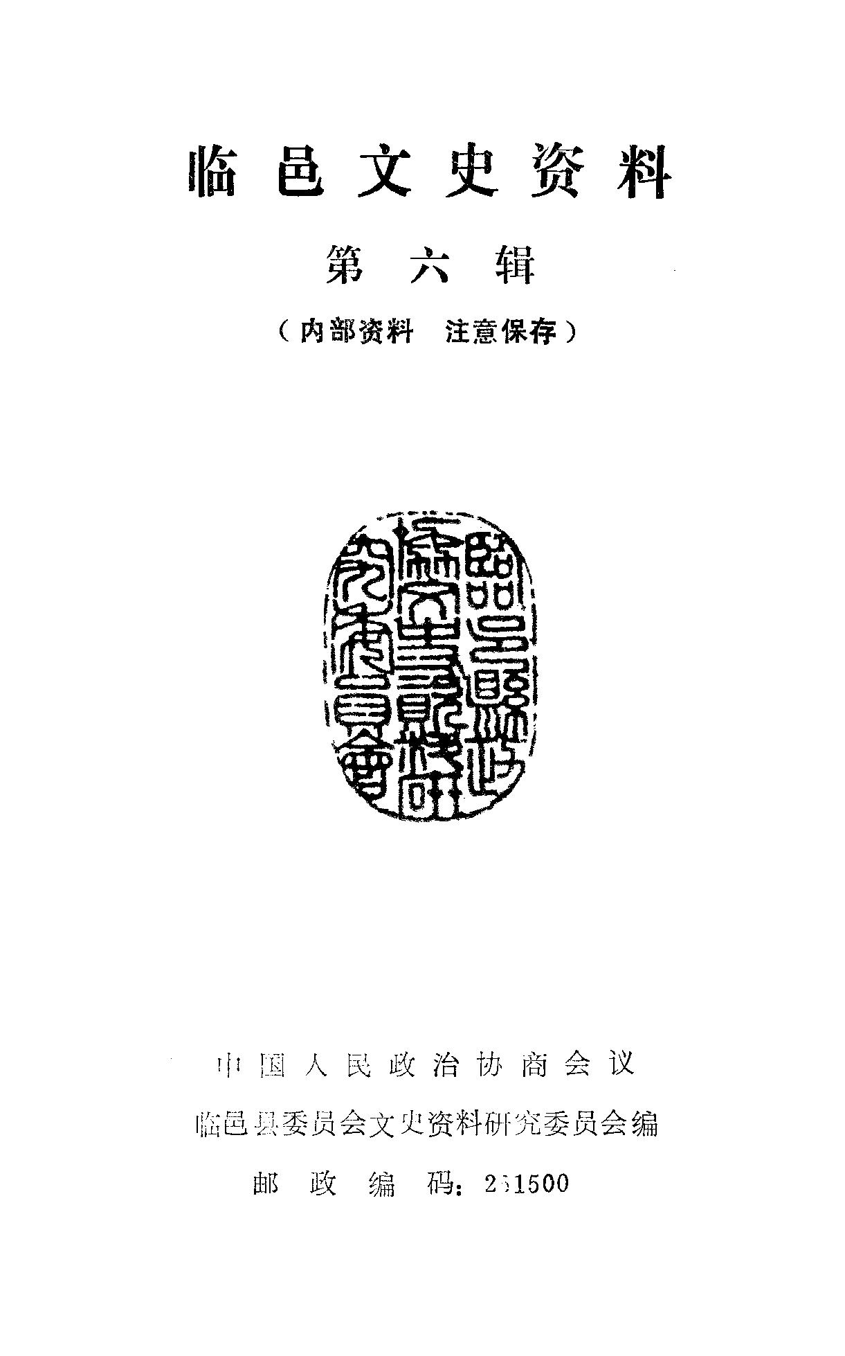 臨邑文史資料第六輯_政協臨邑縣委員會文史資料研究委員會