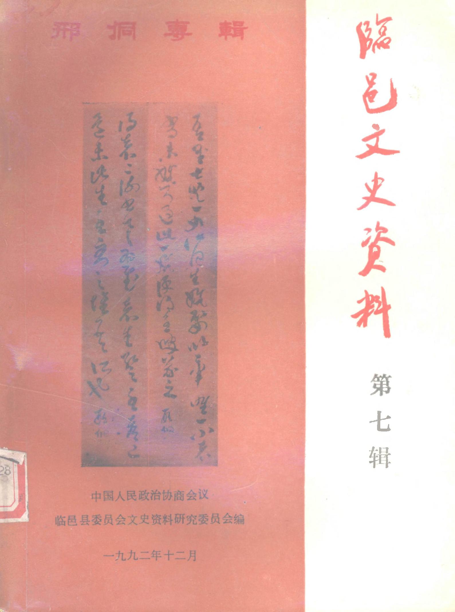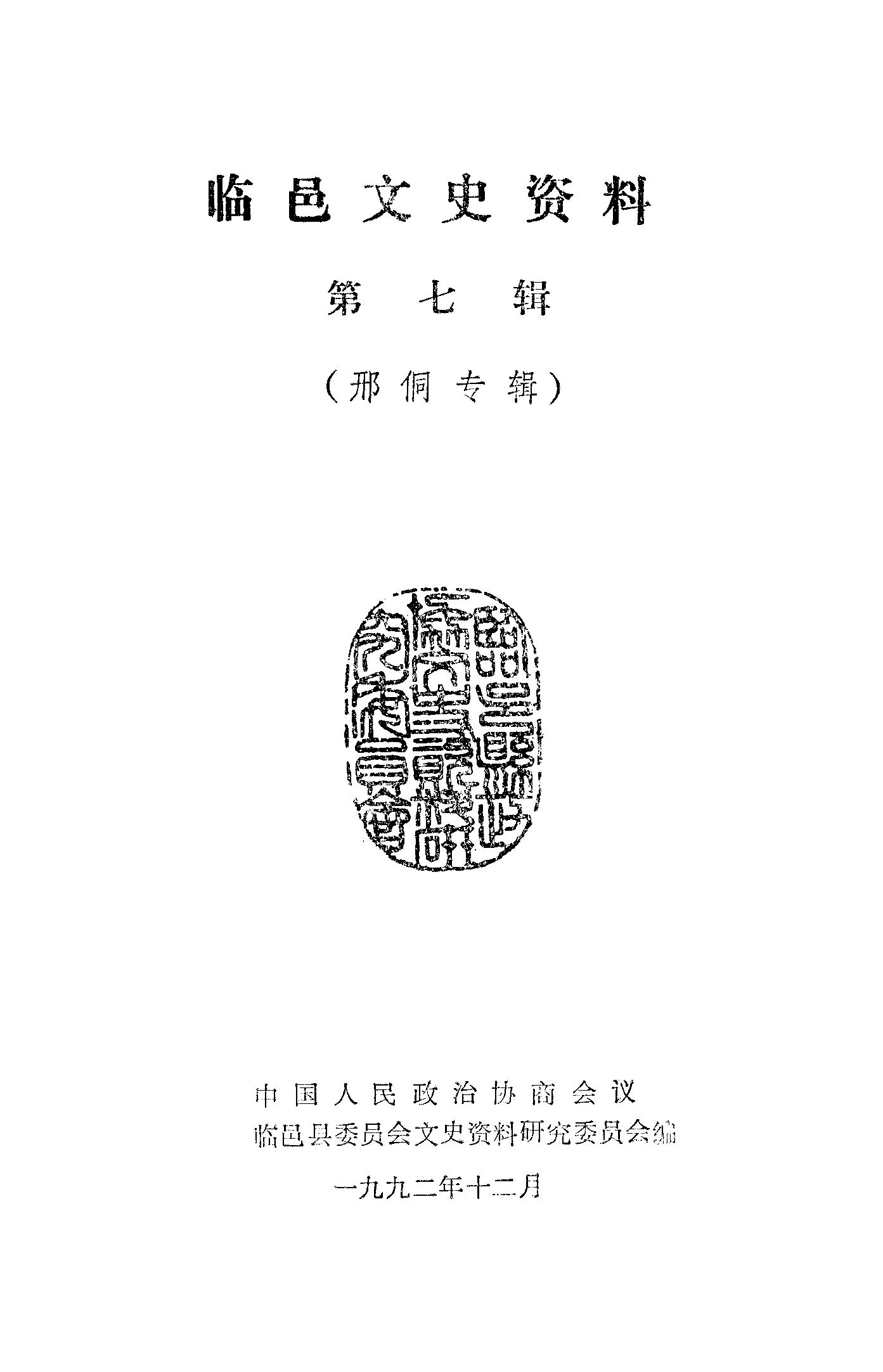 臨邑文史資料第七輯_政協臨邑縣委員會文史資料研究委員會