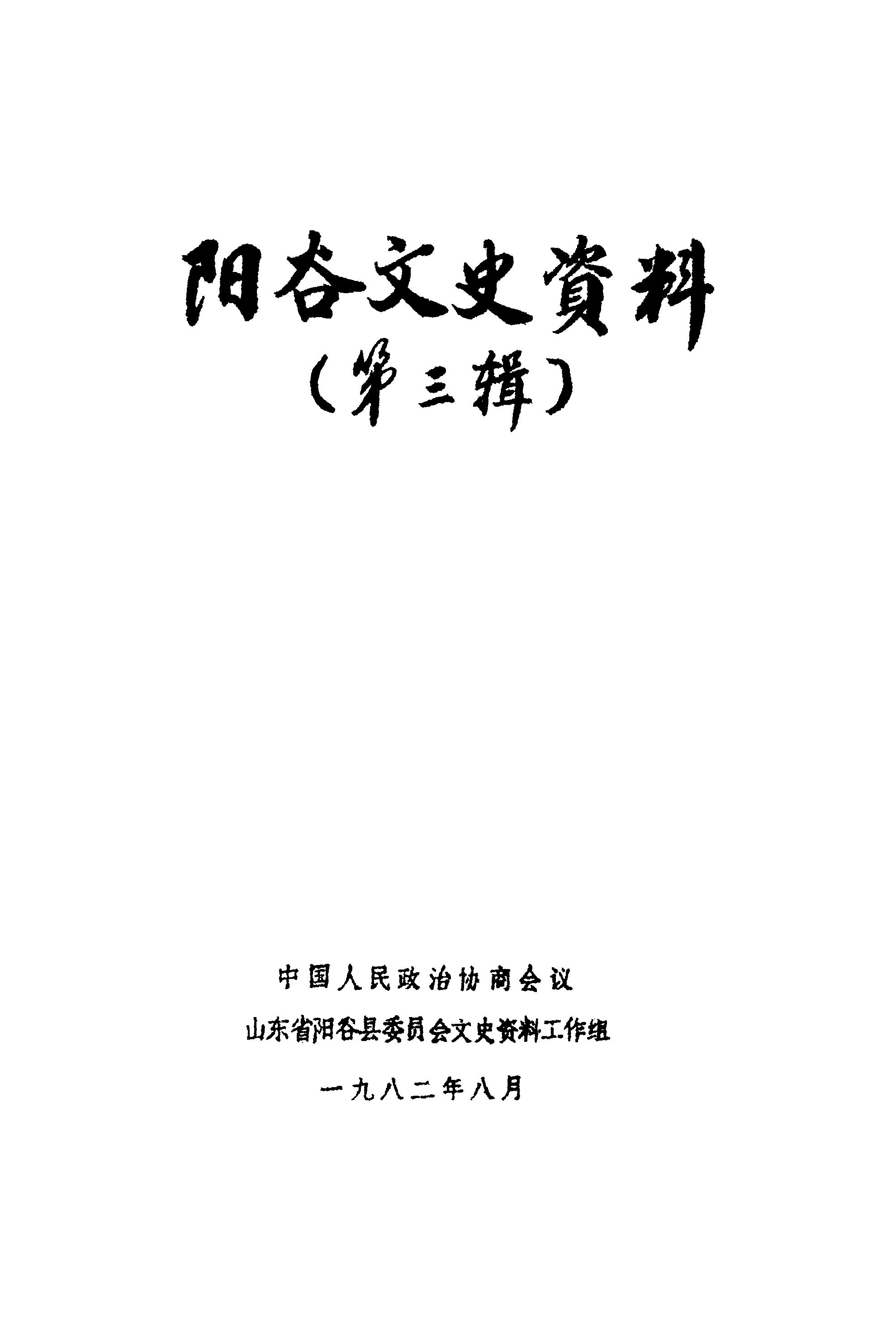 陽谷文史資料第三輯_政協山朹省陽谷縣委員會文史資料工作組