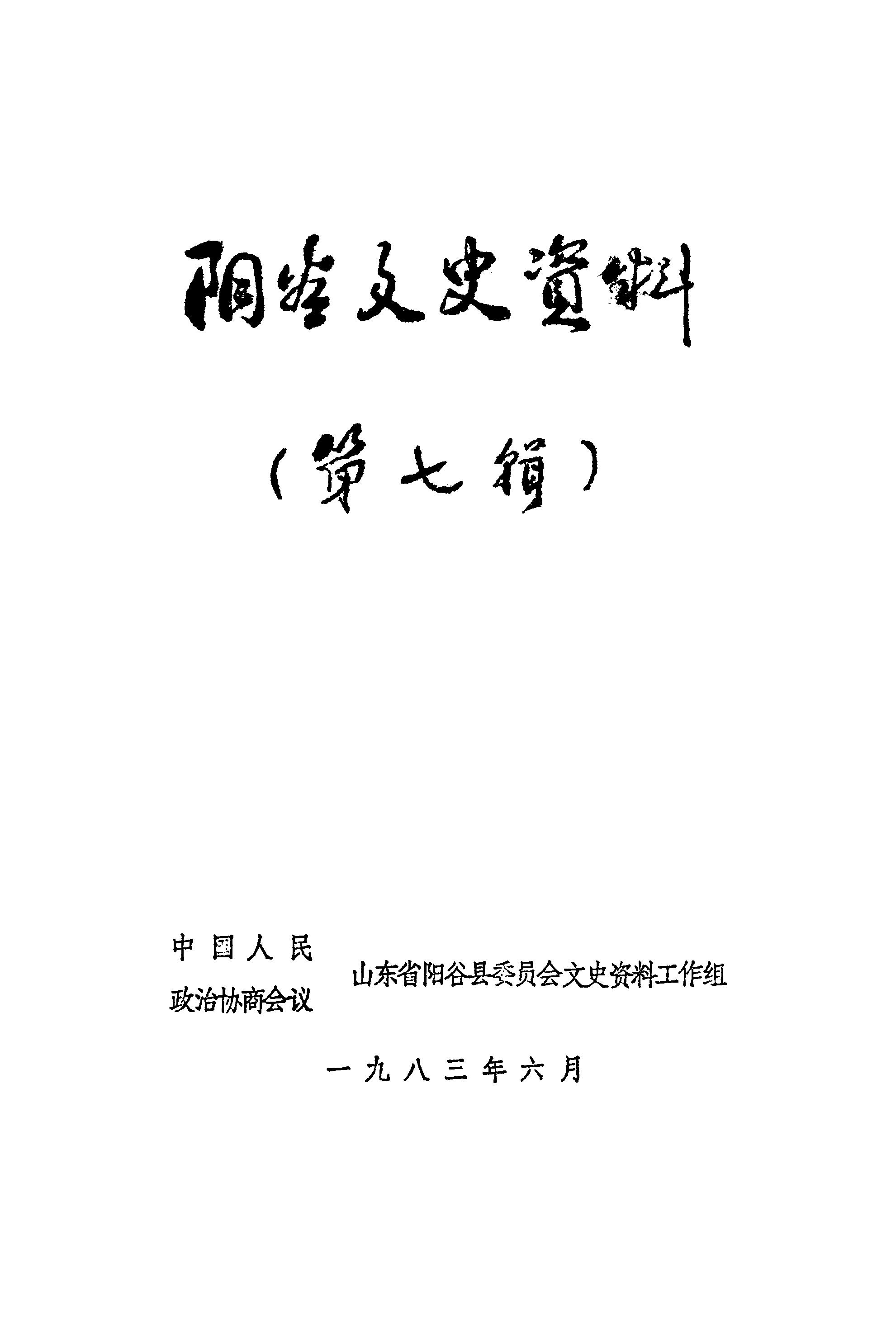 陽谷文史資料第七輯_政協山朹省陽谷縣委員會文史資料工作組