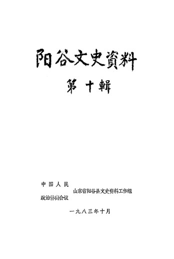 陽谷文史資料第十輯_政協山朹省陽谷縣文史資料工作組