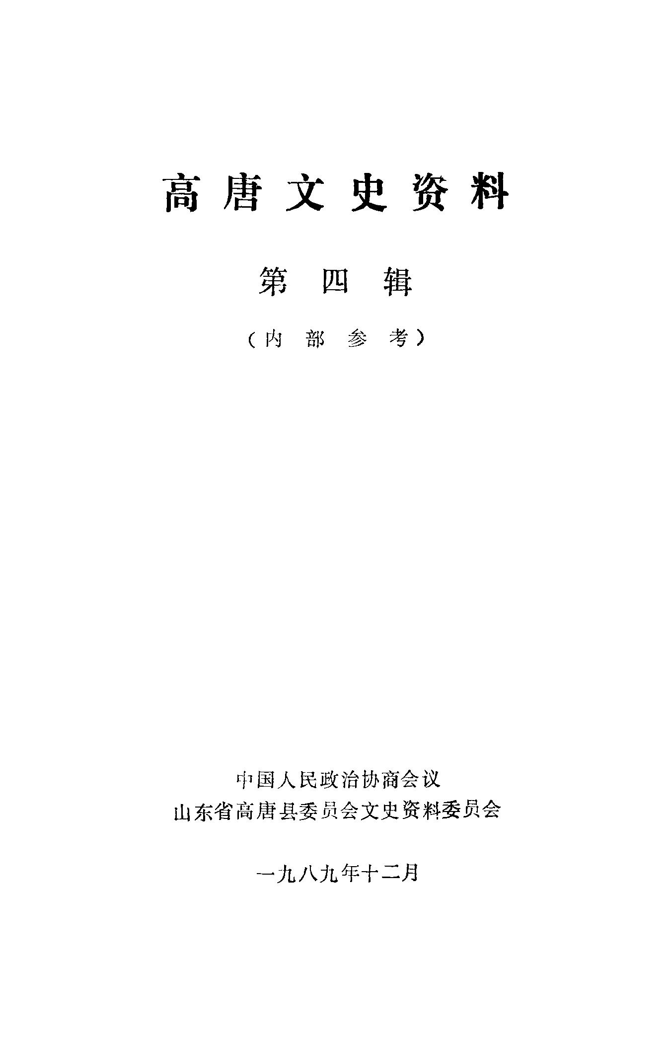高唐文史資料第四輯_政協高唐縣文史資料委員會