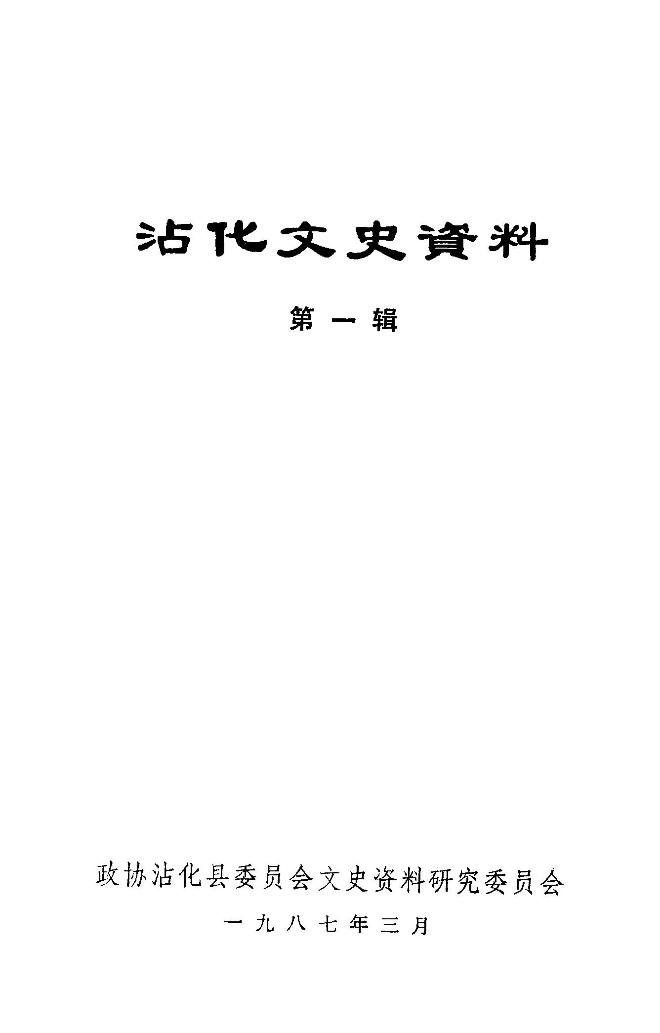 沾化文史資料第一輯_政協沾化縣第一屆文史資料研究委員會