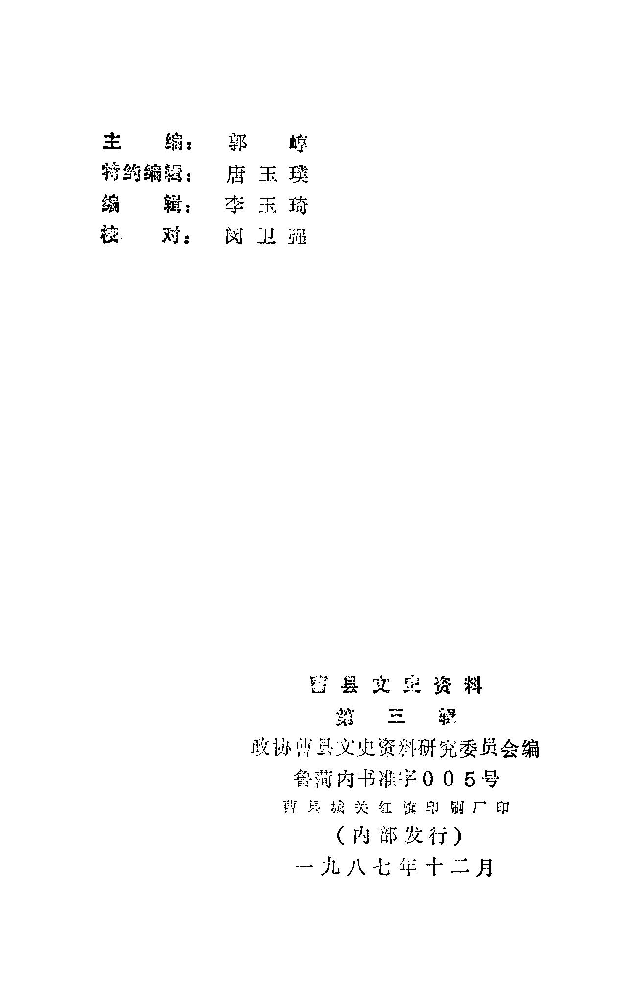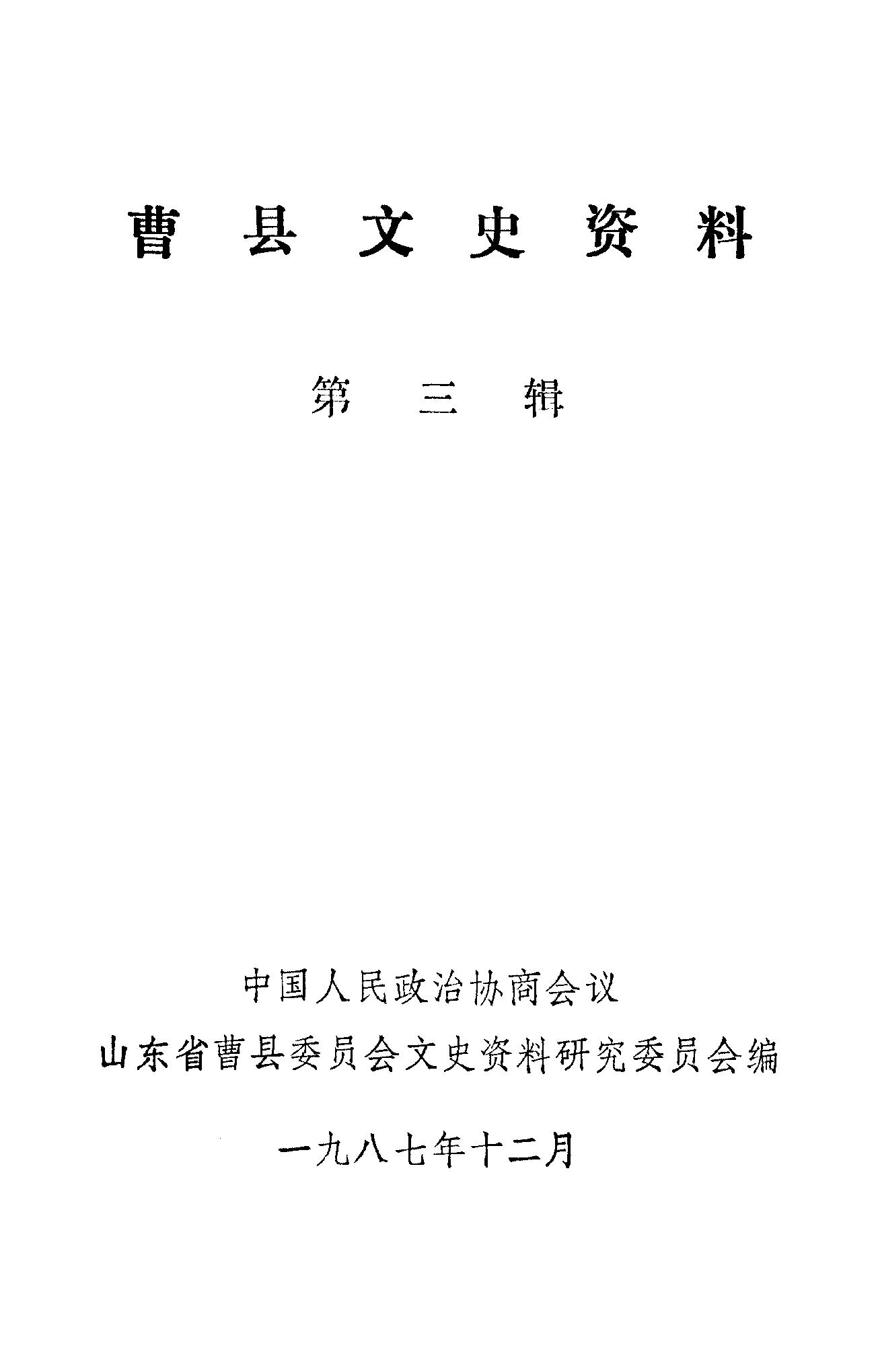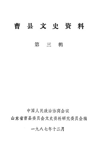 曹縣文史資料第三輯_政協曹縣文史資料研究委員會