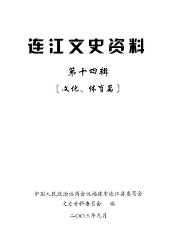 連江文史資料第十四輯_福建省連江縣政協文史資料委員會