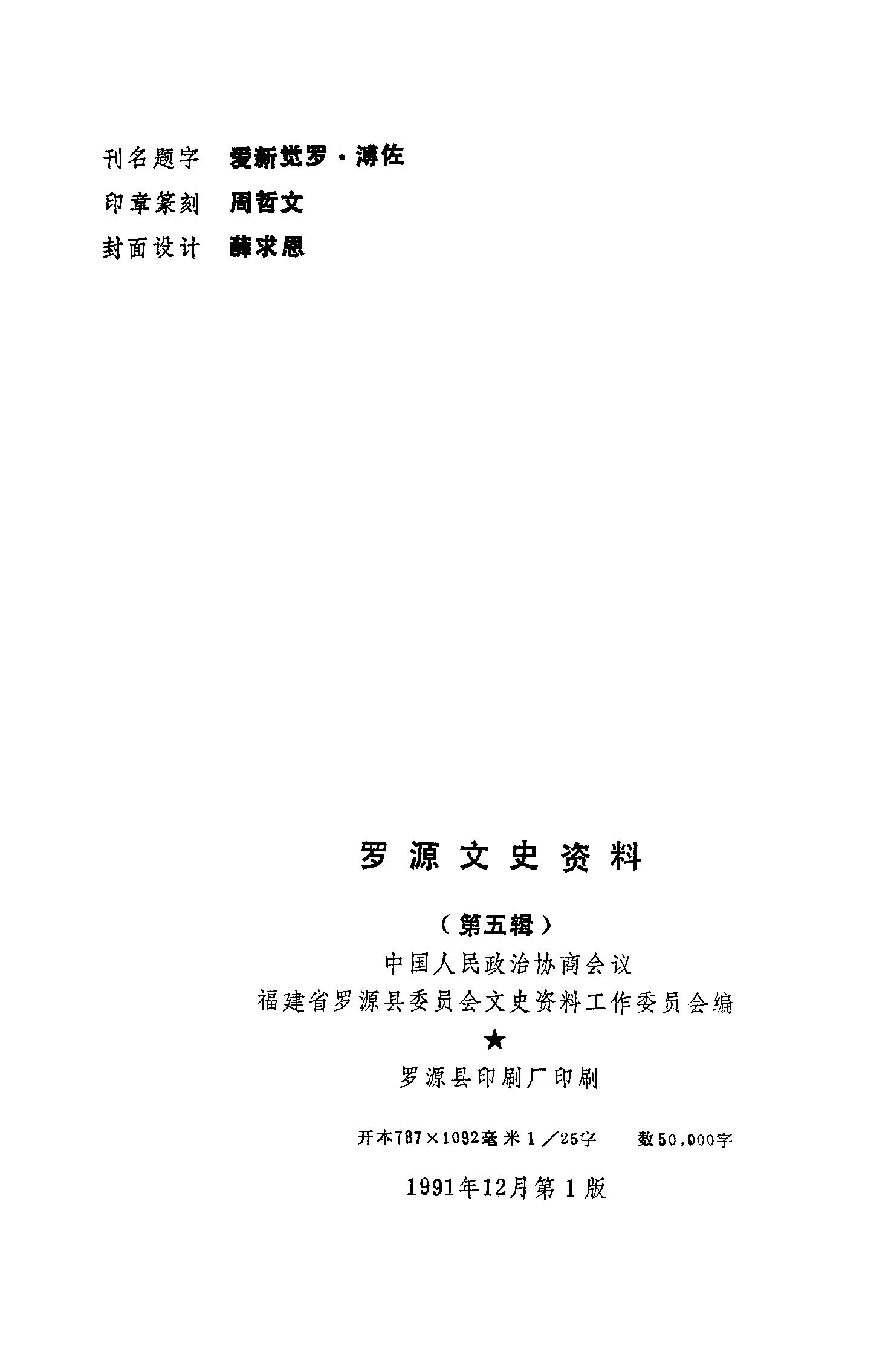 羅源文史資料第五輯_政協福建省羅源縣委員會文史資料工作委員會