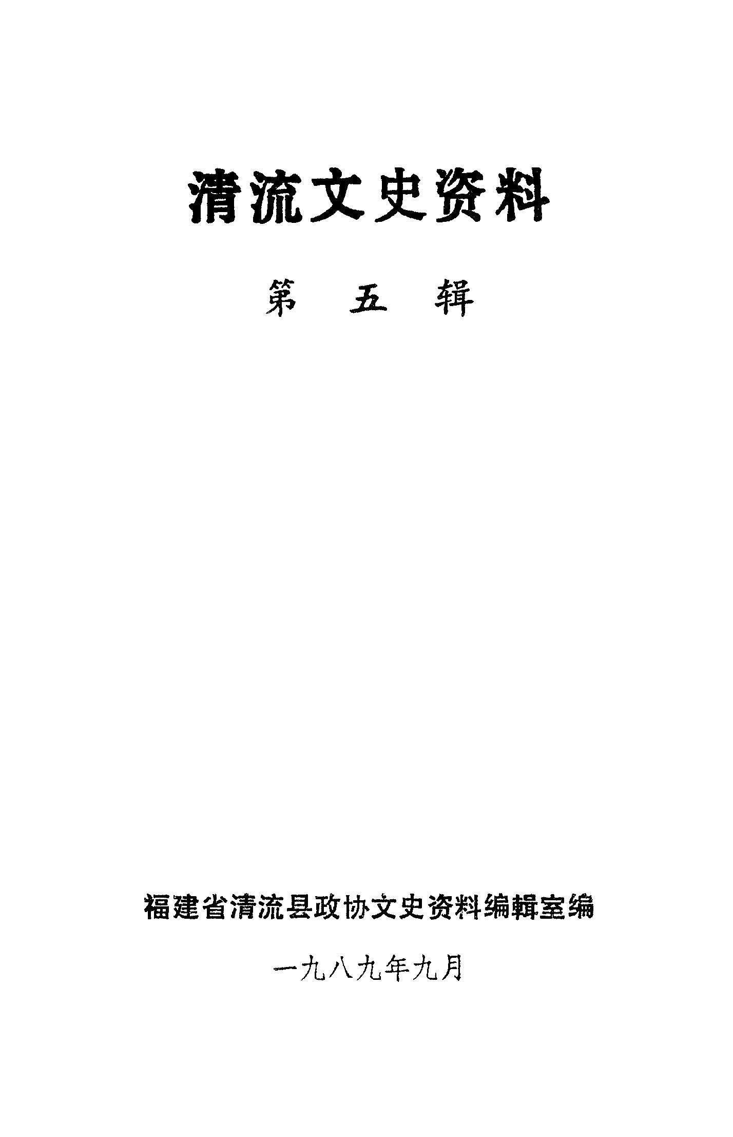 清流文史資料第五輯_福建省清流縣政協文史資料編輯室