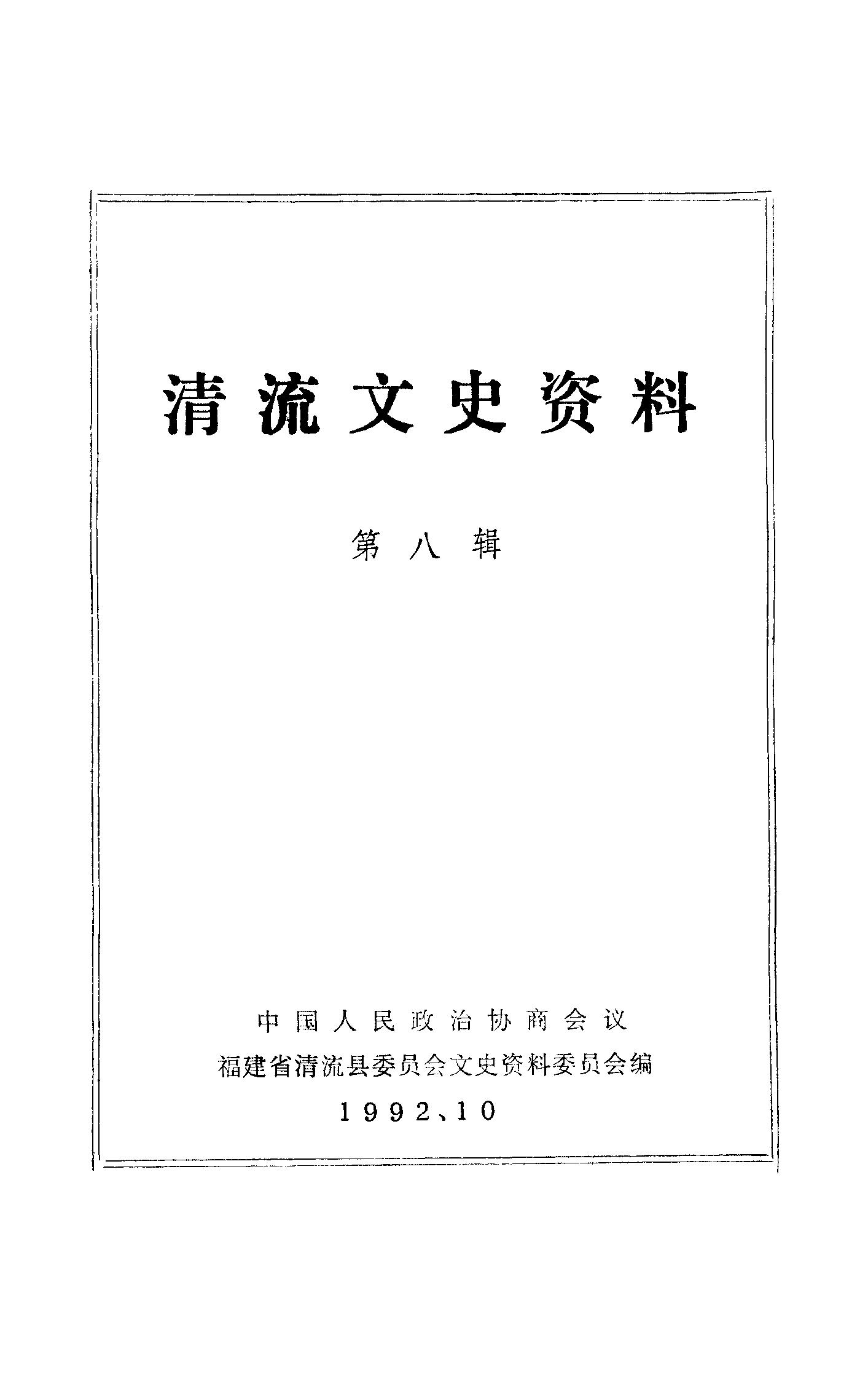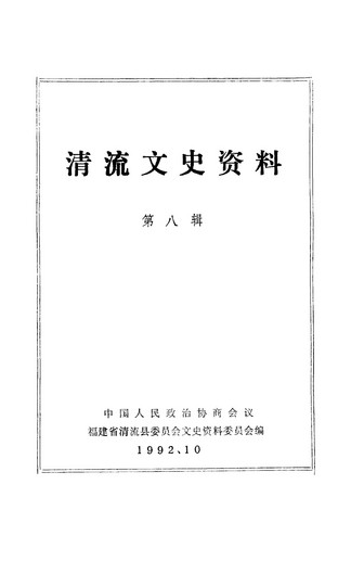 清流文史資料第八輯_政協福建省清流縣委員會文史資料委員會
