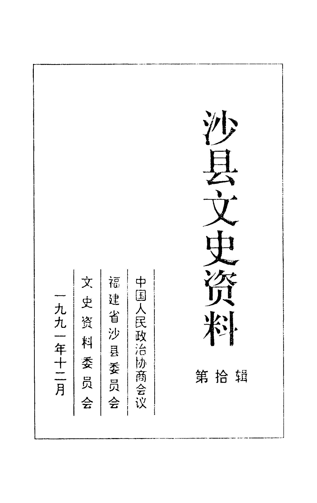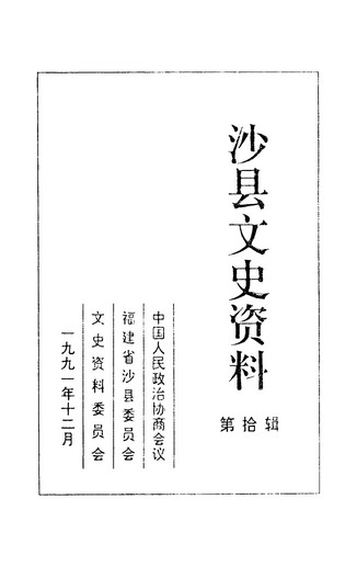 沙縣文史資料第十輯_政協沙縣文史資料委員會