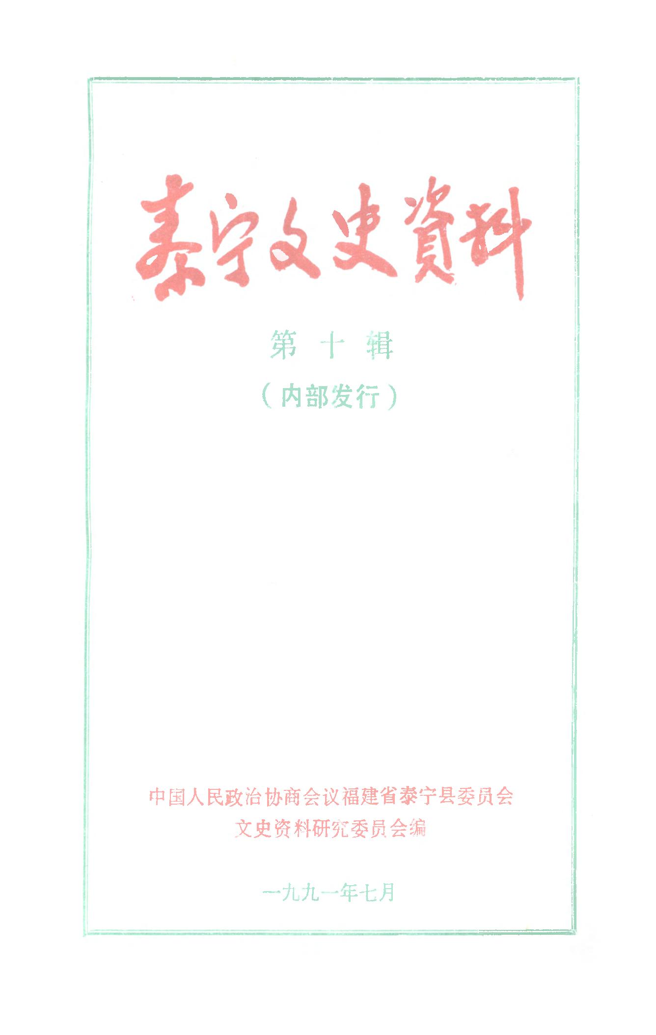 泰寧文史資料第十輯_政協福建省泰寧縣委員會文史資料研究委員會
