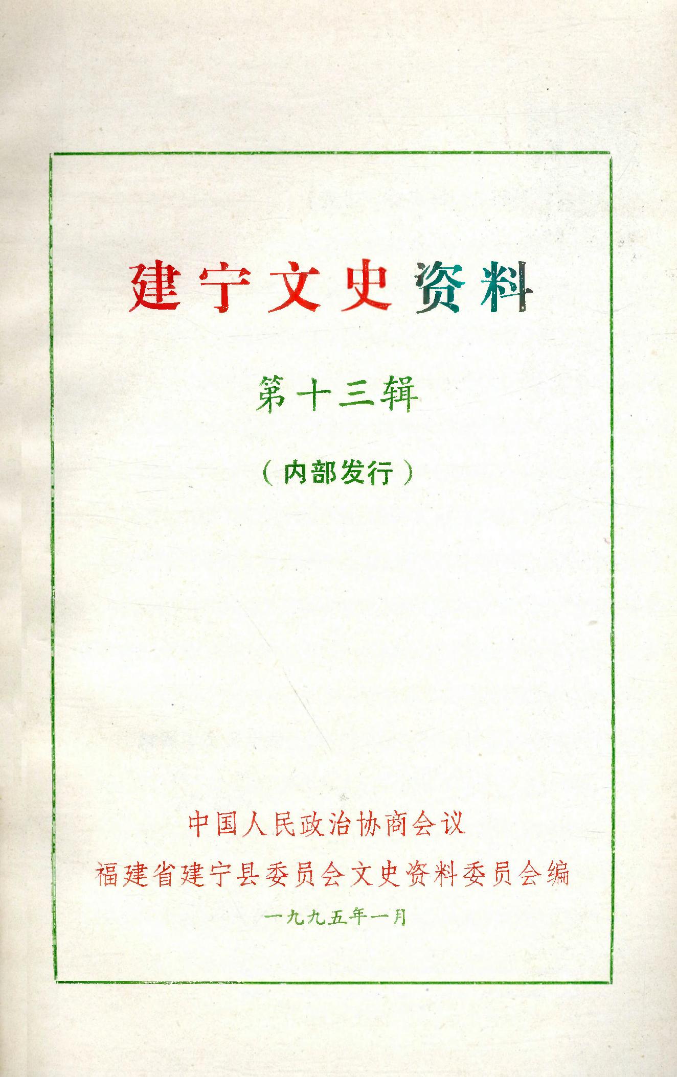 建寧文史資料第十三輯_政協福建省建寧縣委員會文史資料委員會
