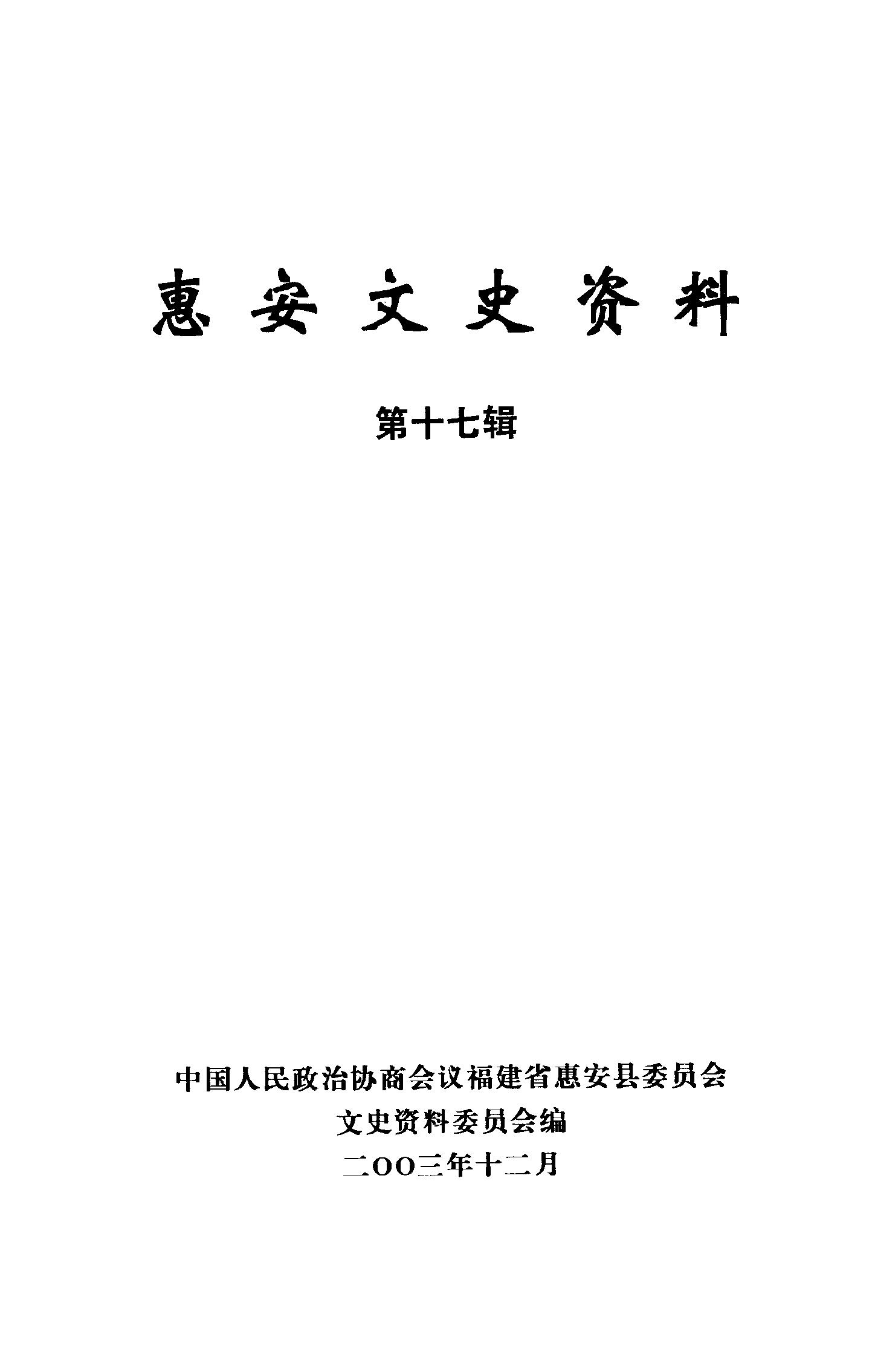 惠安文史資料第十七輯_政協福建省惠安縣委員會文史資料委員會