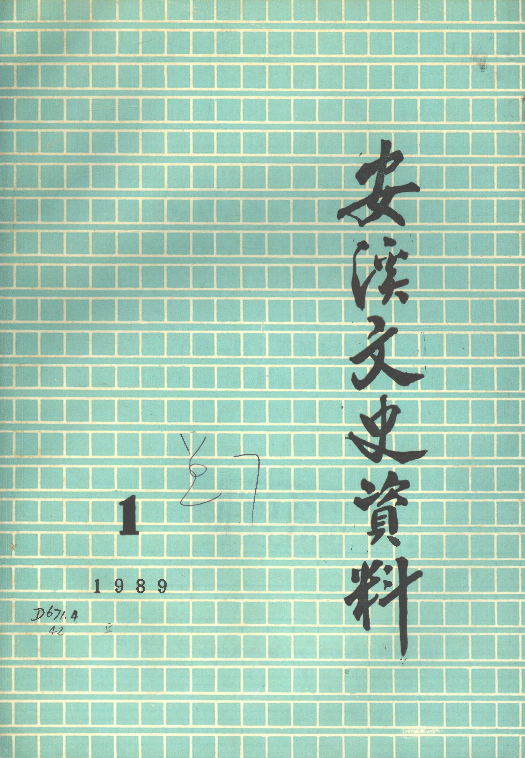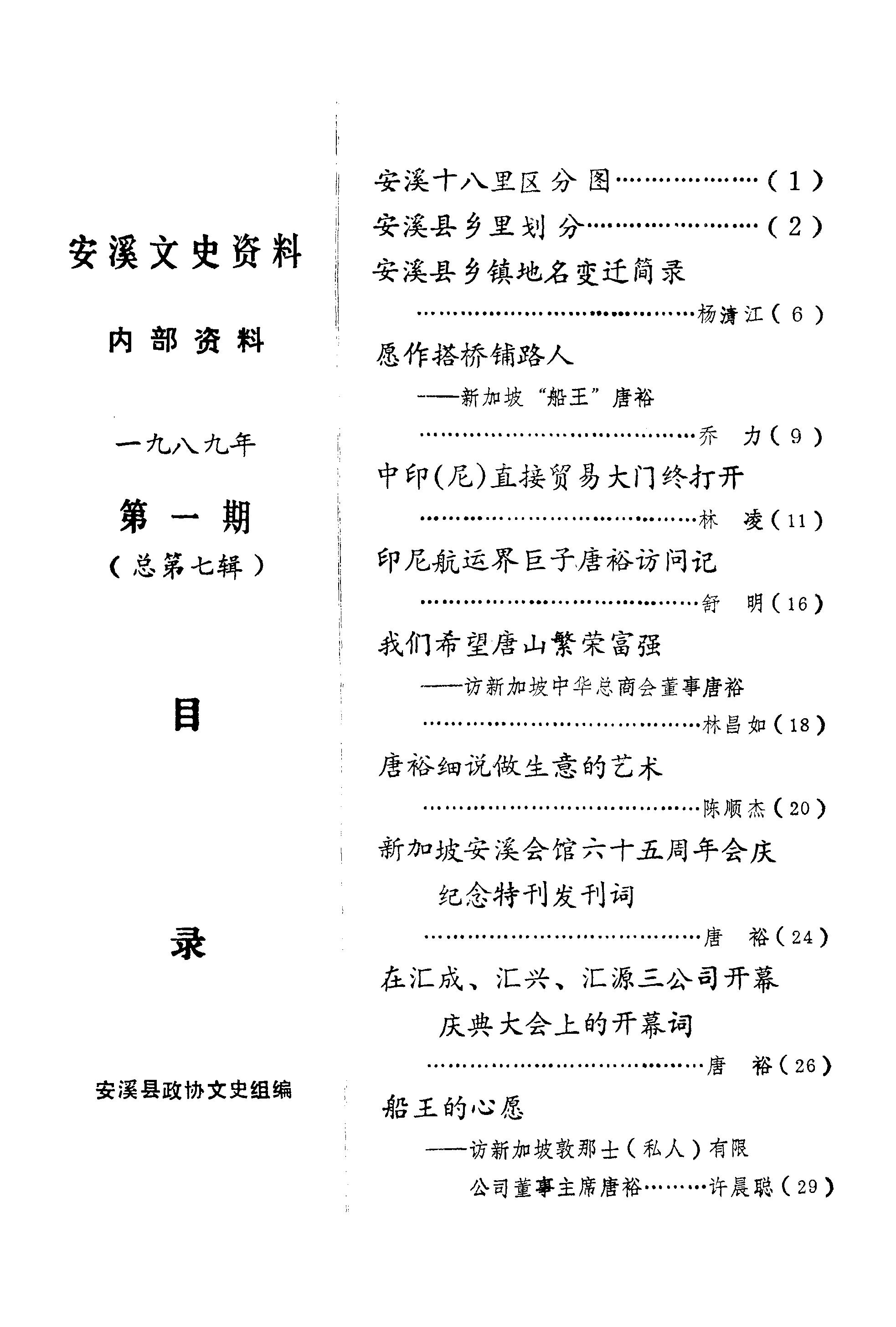 安溪文史資料第一期_政協安溪縣委員會文史資料工作組