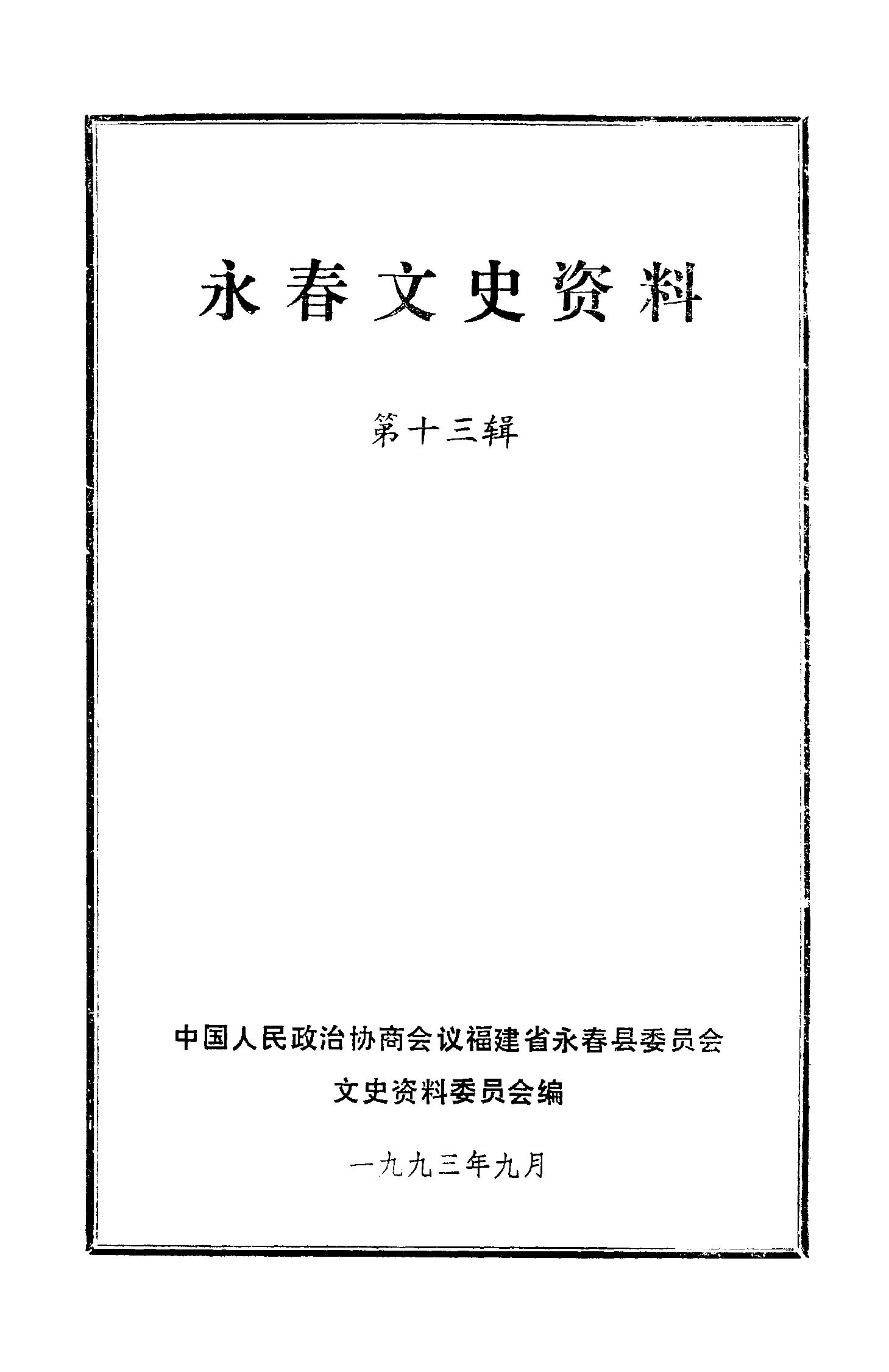 永春文史資料第十三輯_政協福建省永春縣委員會文史資料委員會