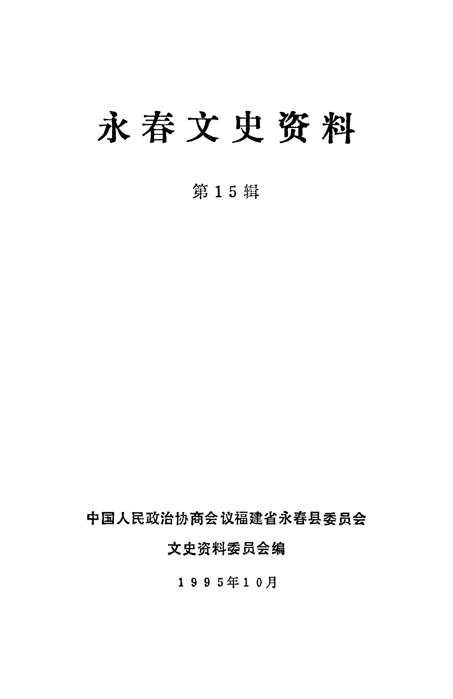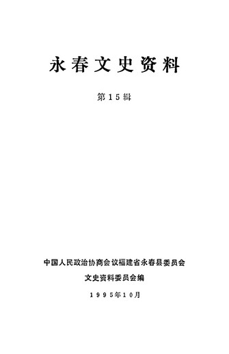 永春文史資料第十五輯_政協福建省永春縣委員會文史資料委員會