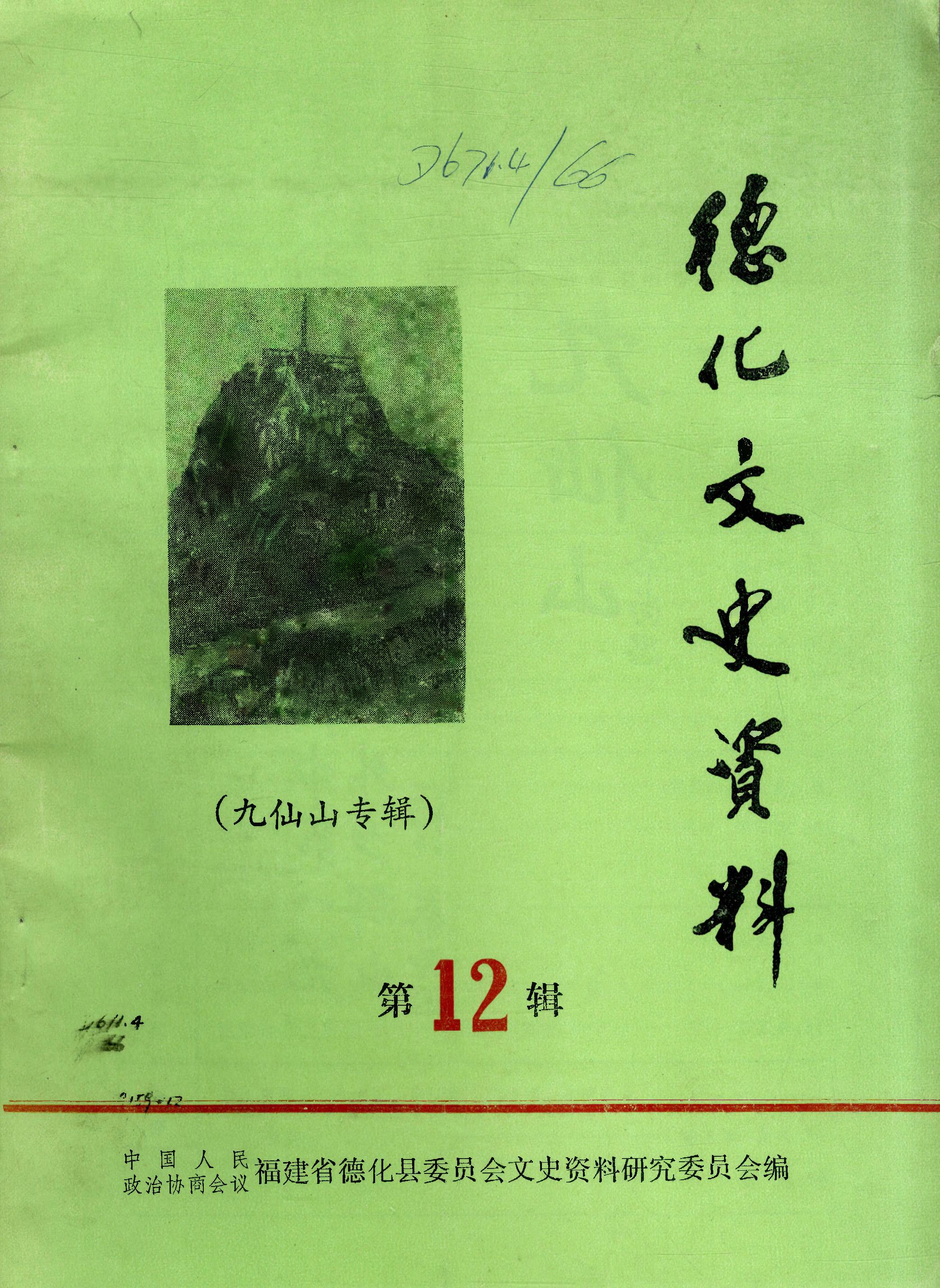 德化文史資料第十二輯_政協福建省德化縣委員會文史資料研究委員會