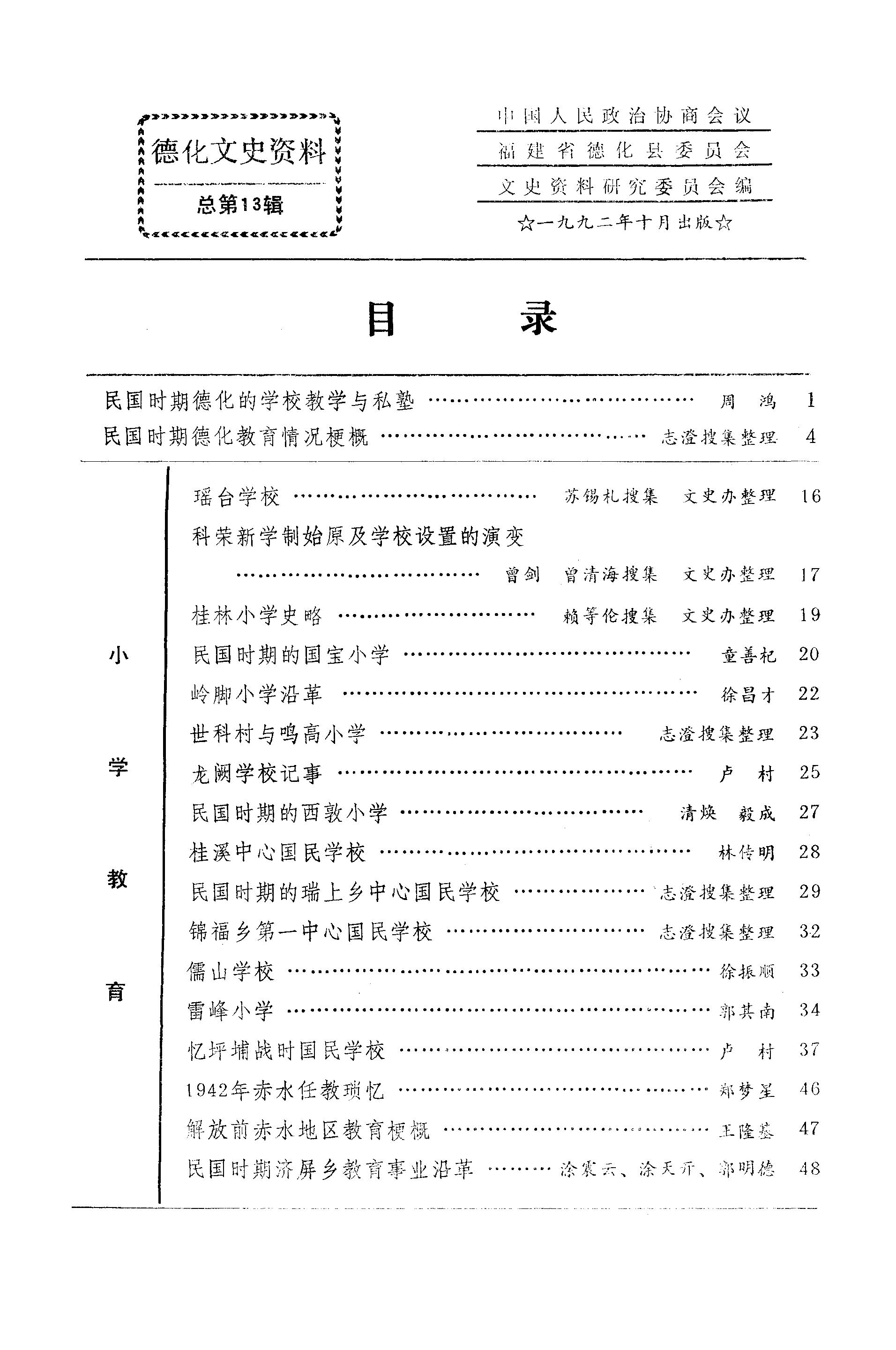 德化文史資料第十三輯_政協福建省德化縣委員會文史資料研究委員會