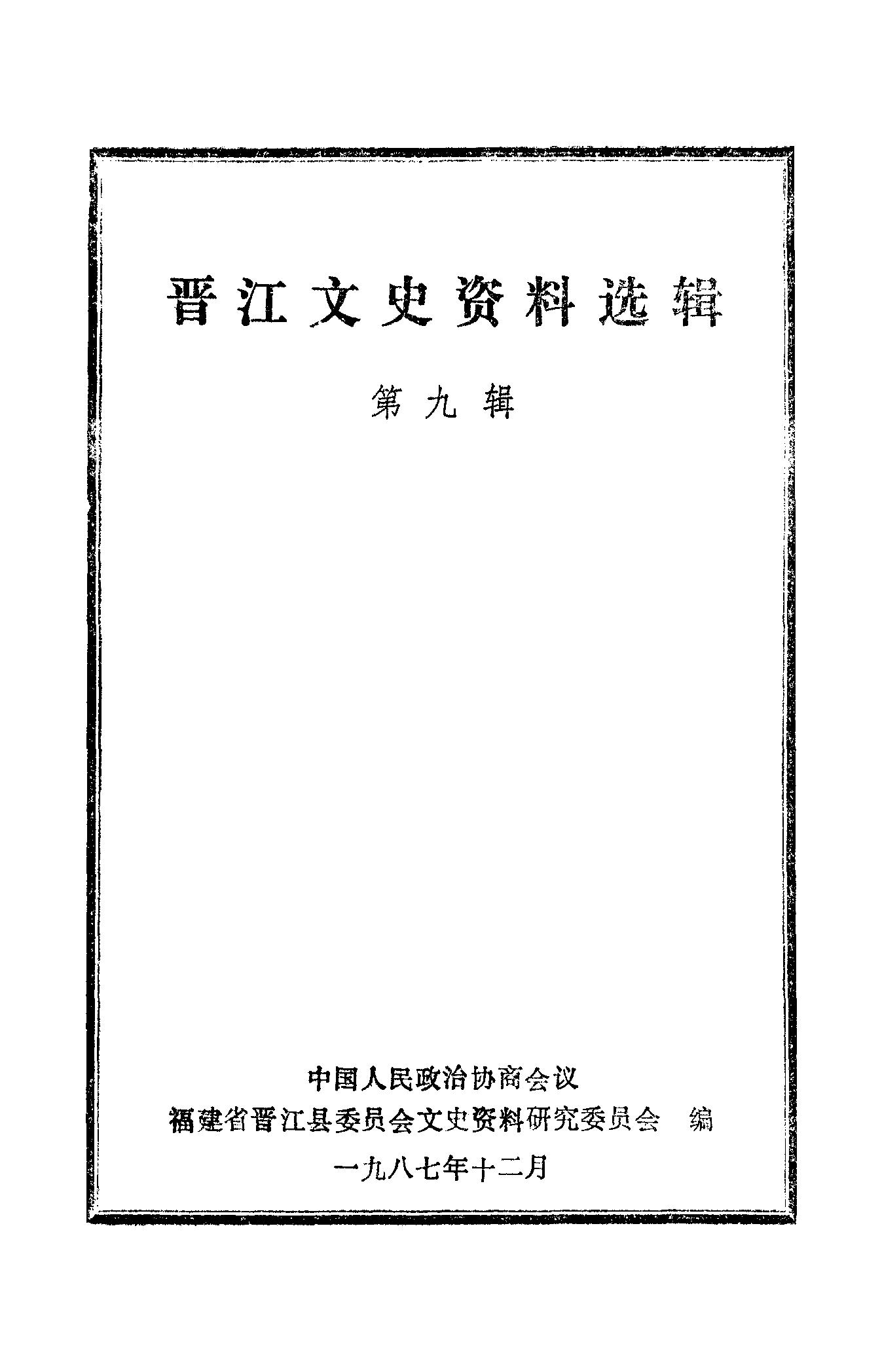 晉江文史資料選輯第九輯_政協福建省晉江縣委員會文史資料研究委員會