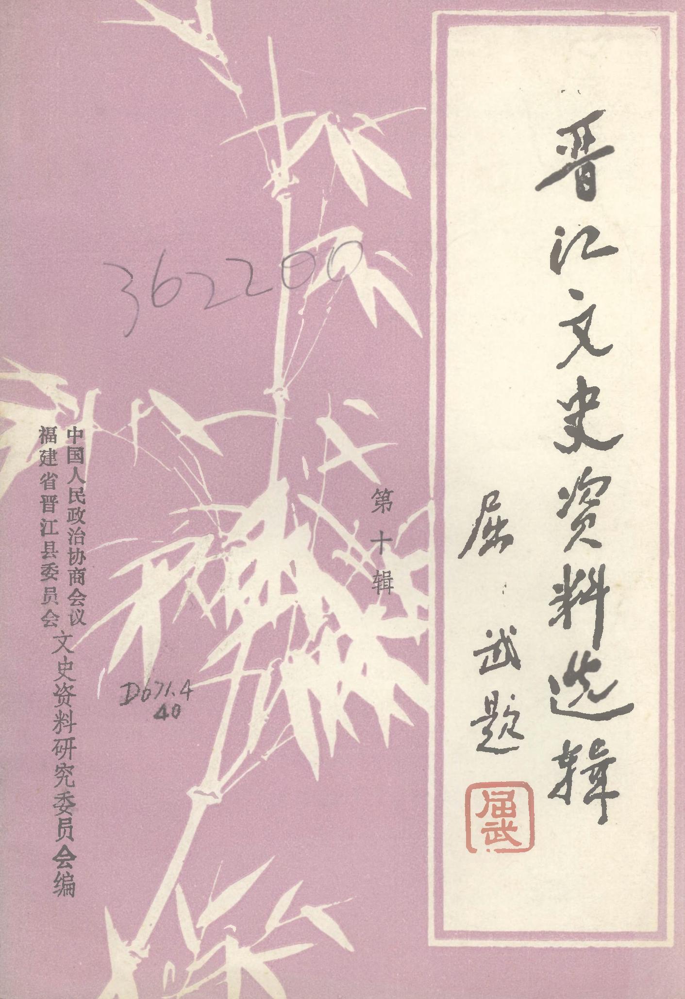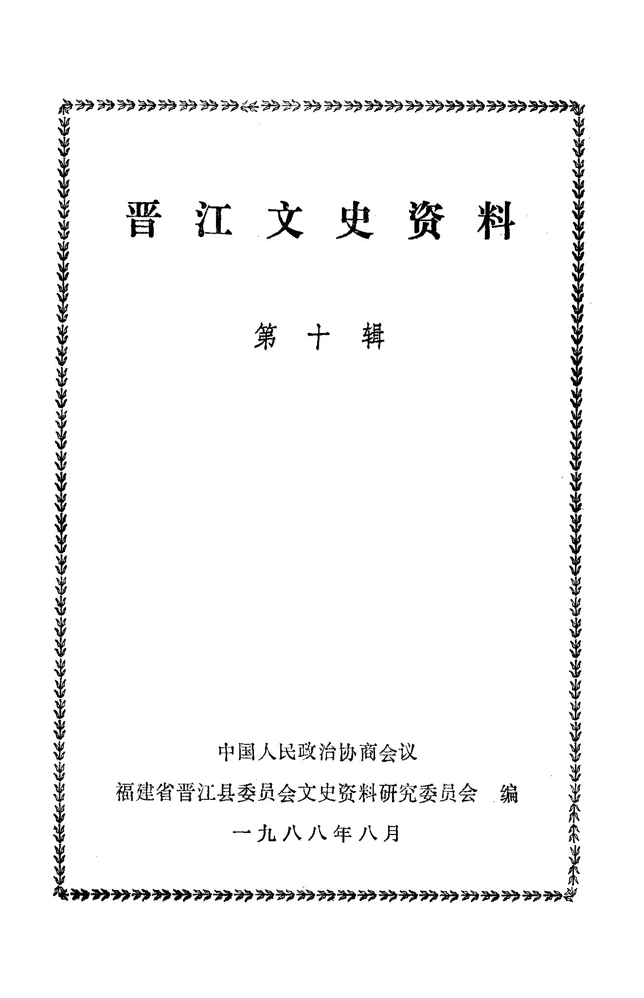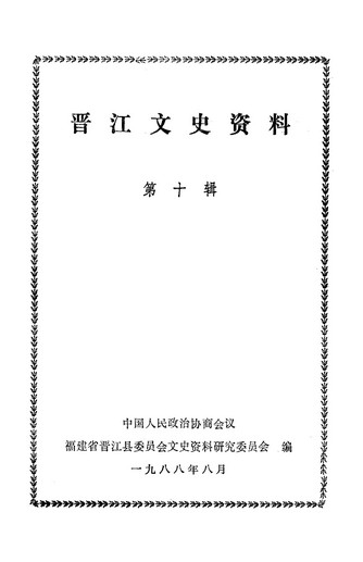 晉江文史資料第十輯_政協福建省晉江縣委員會文史資料研究委員會