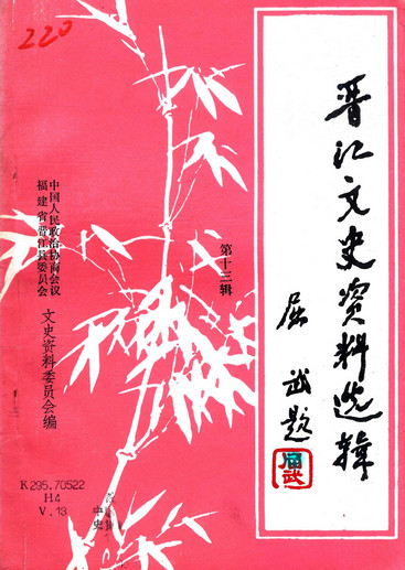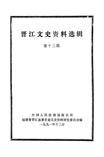 晉江文史資料選輯第十三輯_政協福建省晉江縣委員會文史資料研究委員會