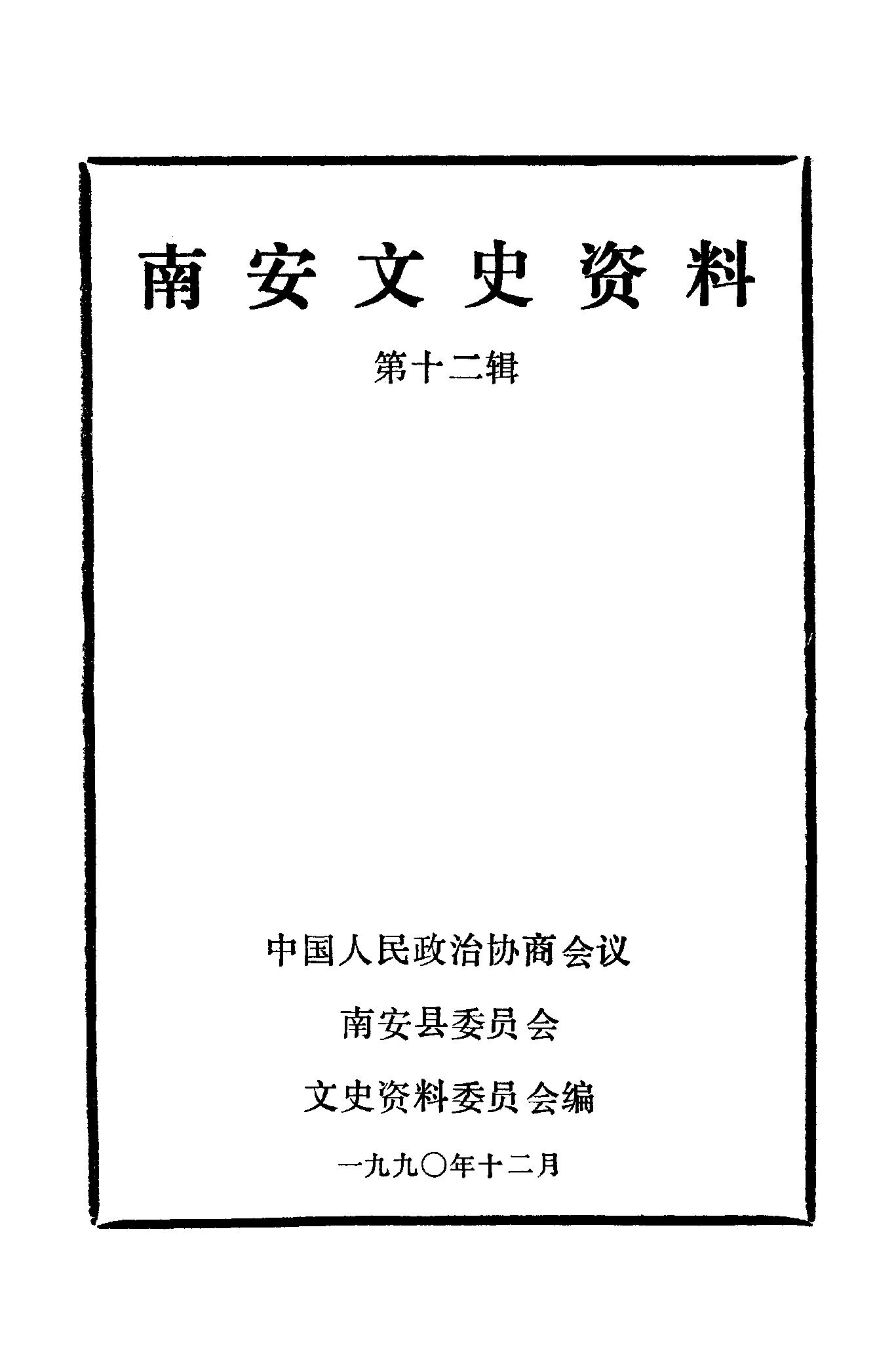 南安文史資料第十二輯_政協南安縣委員會文史資料委員會