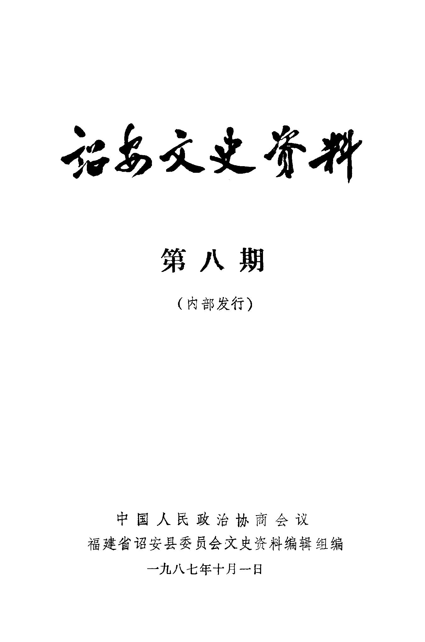 詔安文史資料第八期_政協福建省詔安縣委員會文史資料編輯組