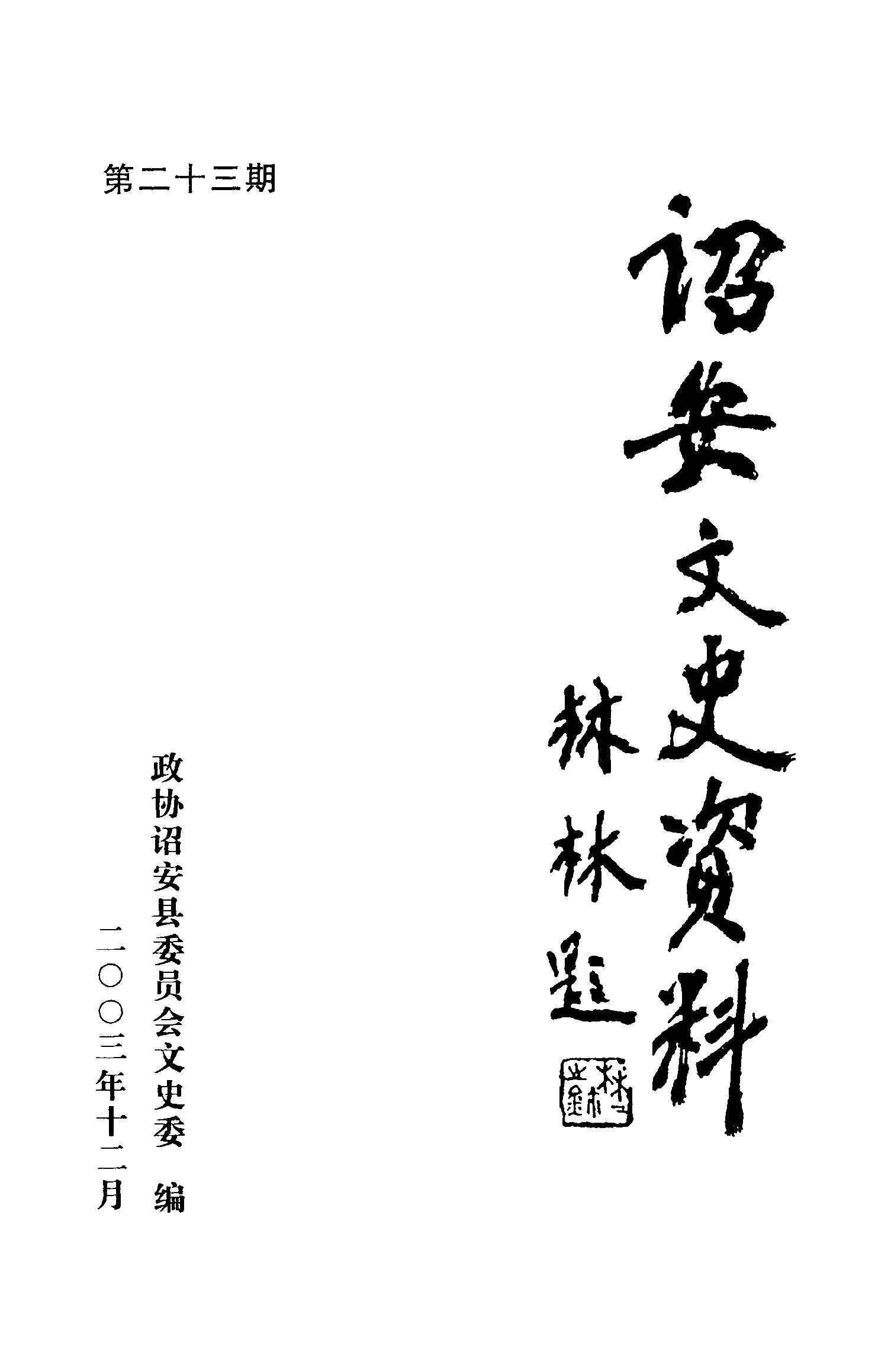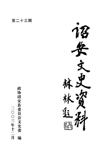 詔安文史資料第二十三期_政協詔安縣委員會文史委