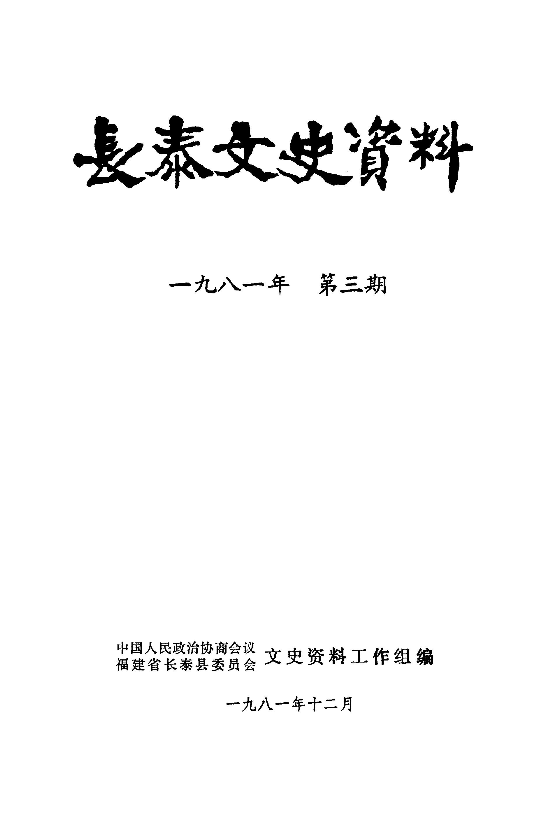 長泰文史資料第三期_政協福建省長泰縣委員會文史資料工作組