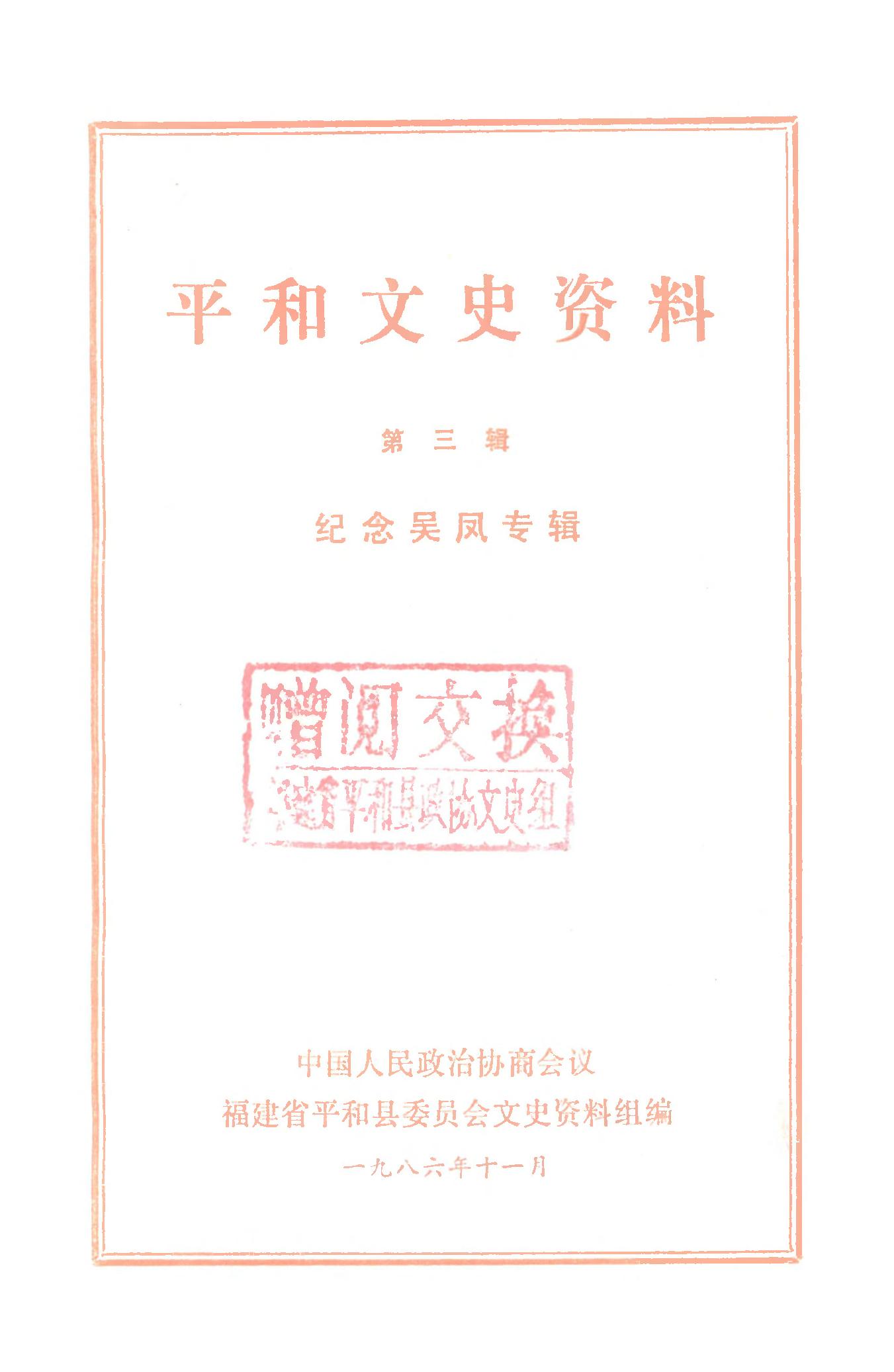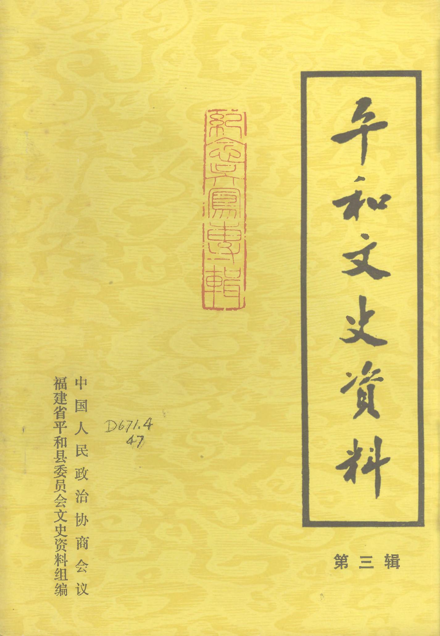 平和文史資料第三輯_政協福建省平和縣委員會文史資料組