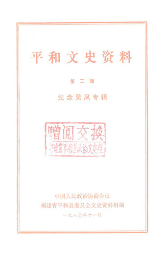 摘自《平和文史資料第三輯_政協福建省平和縣委員會文史資料組》