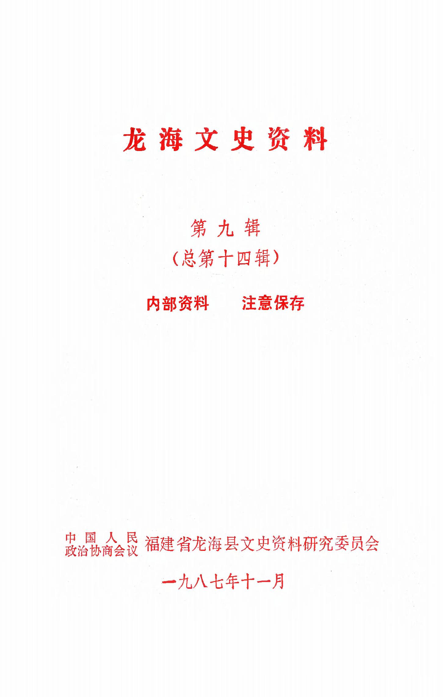龍海文史資料第九輯_政協福建省龍海縣文史資料研究委員會