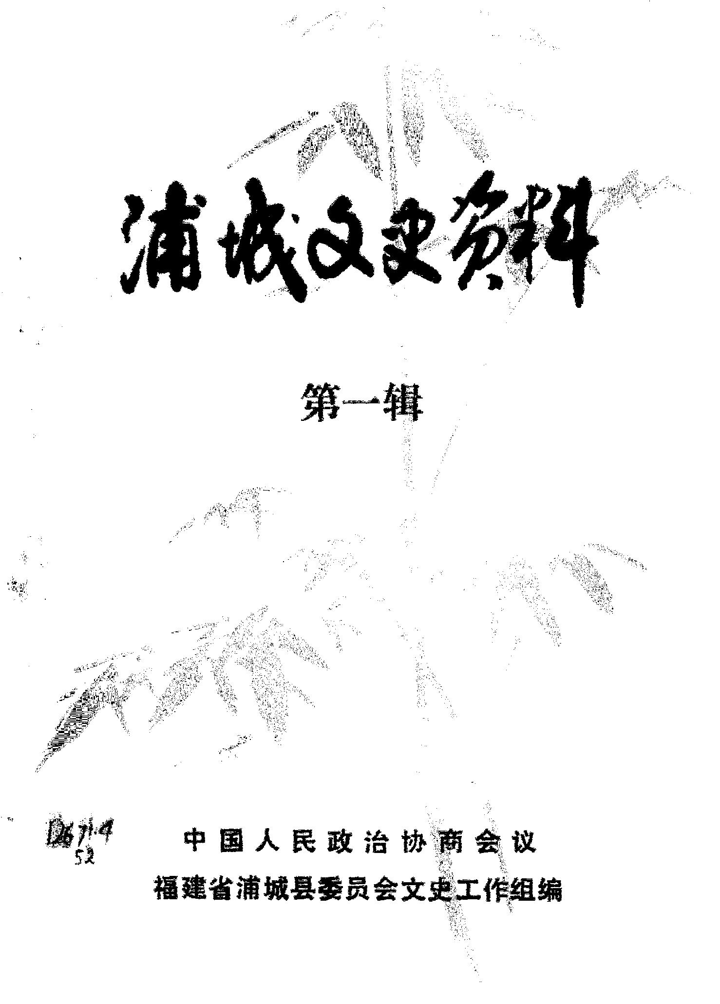 浦城文史資料第一輯_政協福建省浦城縣委員會文史工作組