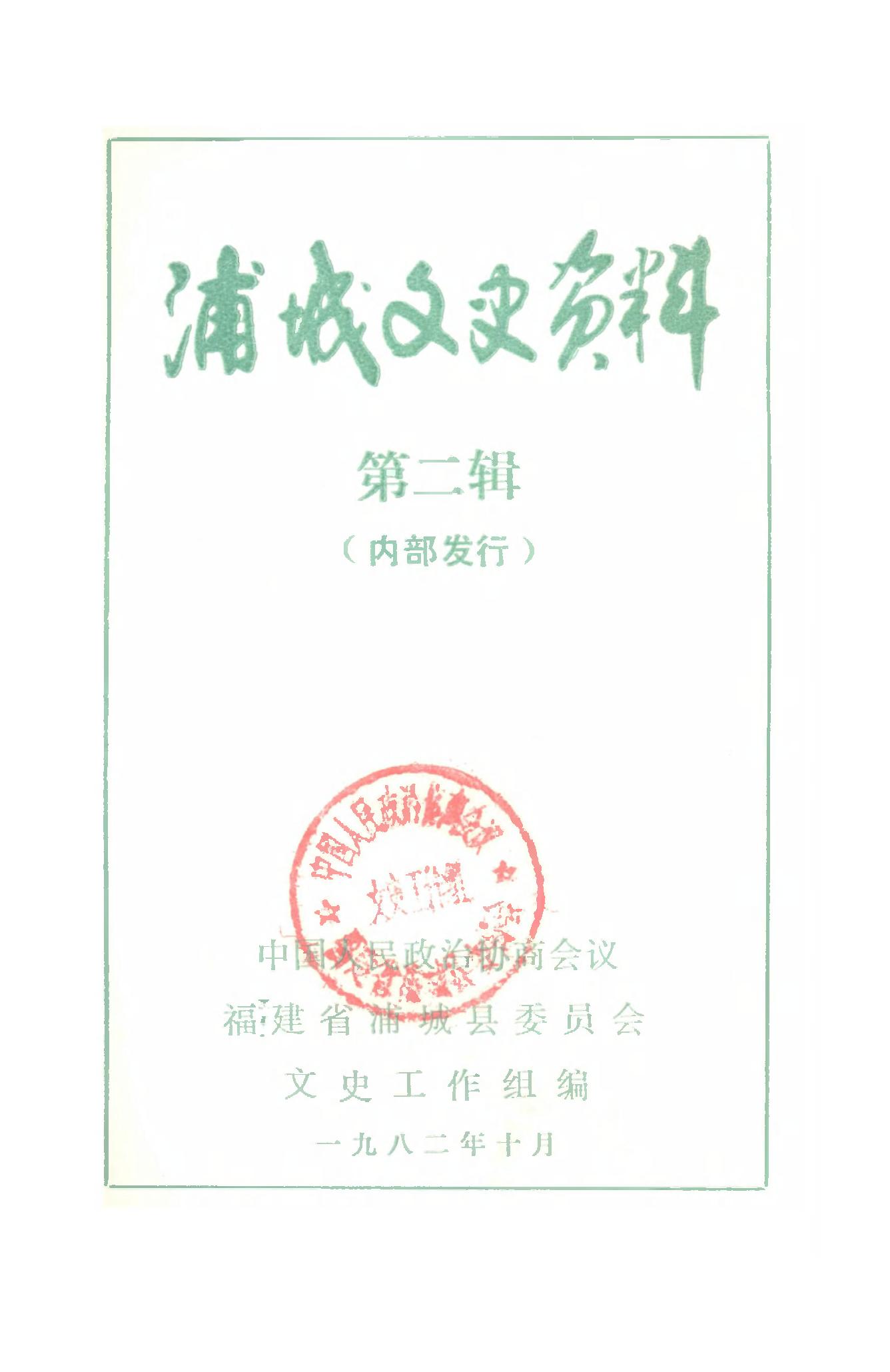 浦城文史資料第二輯_政協福建省浦城縣委員會文史工作組