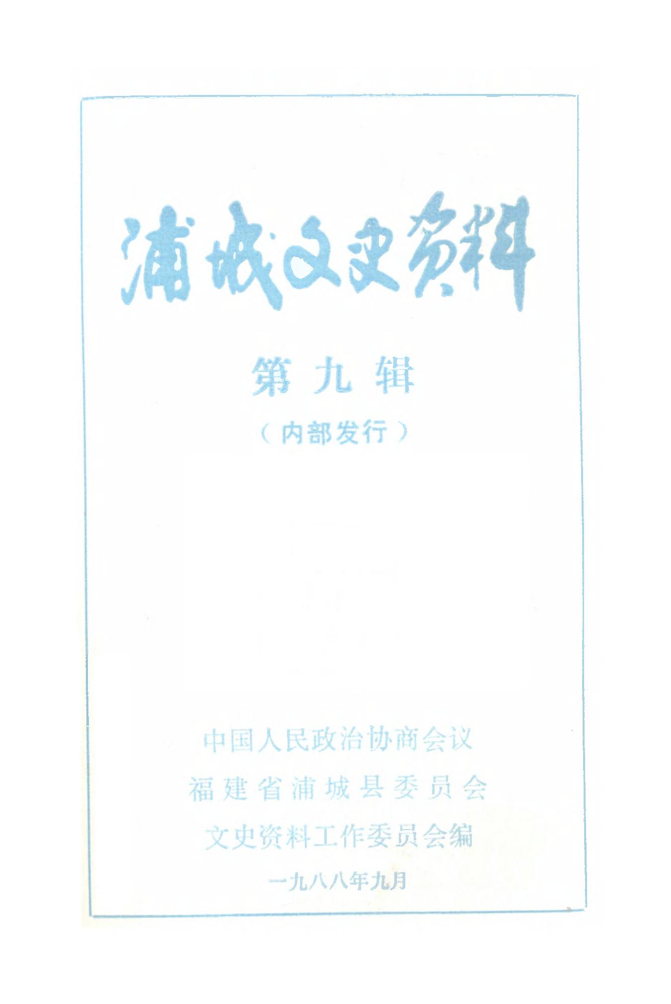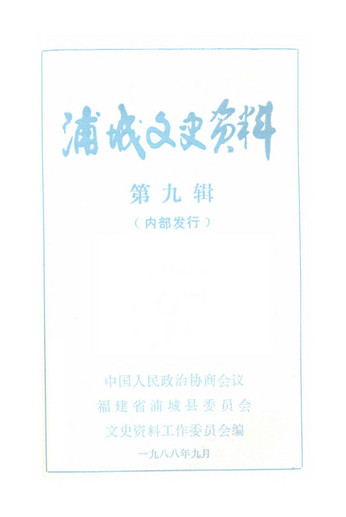 浦城文史資料第九輯_政協福建省浦城縣委員會文史資料工作委員會