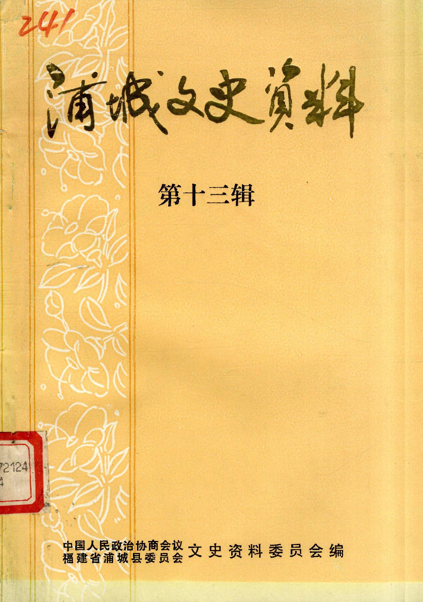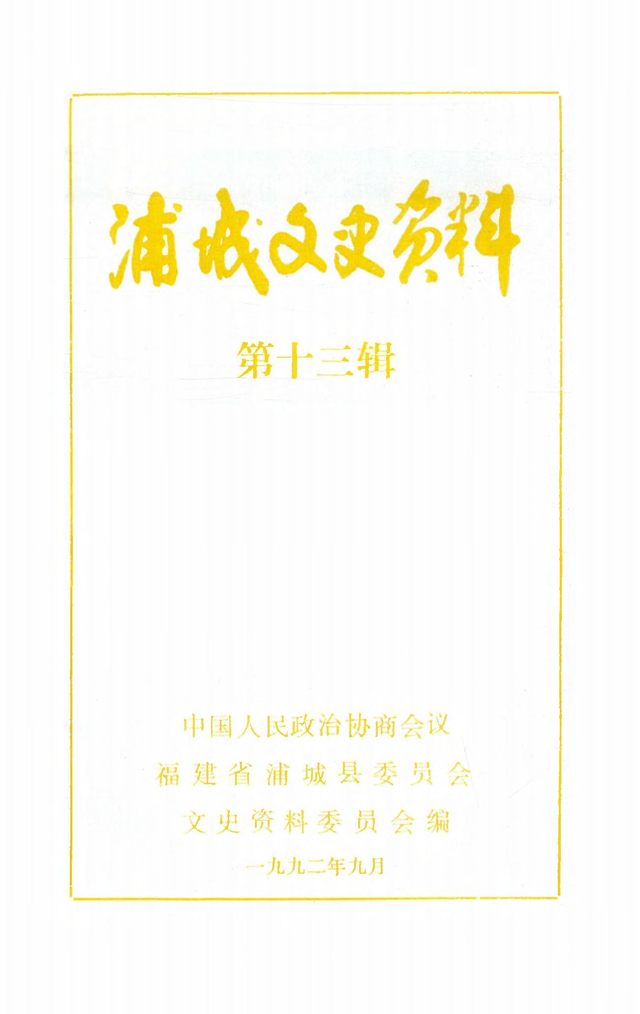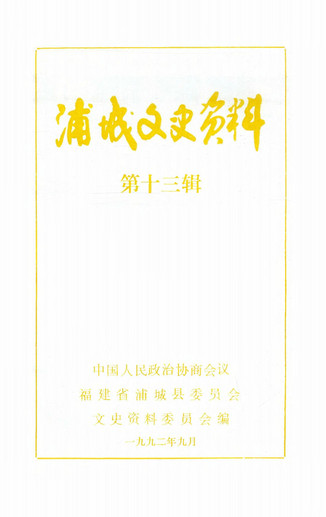 浦城文史資料第十三輯_政協福建省浦城縣委員會文史資料委員會