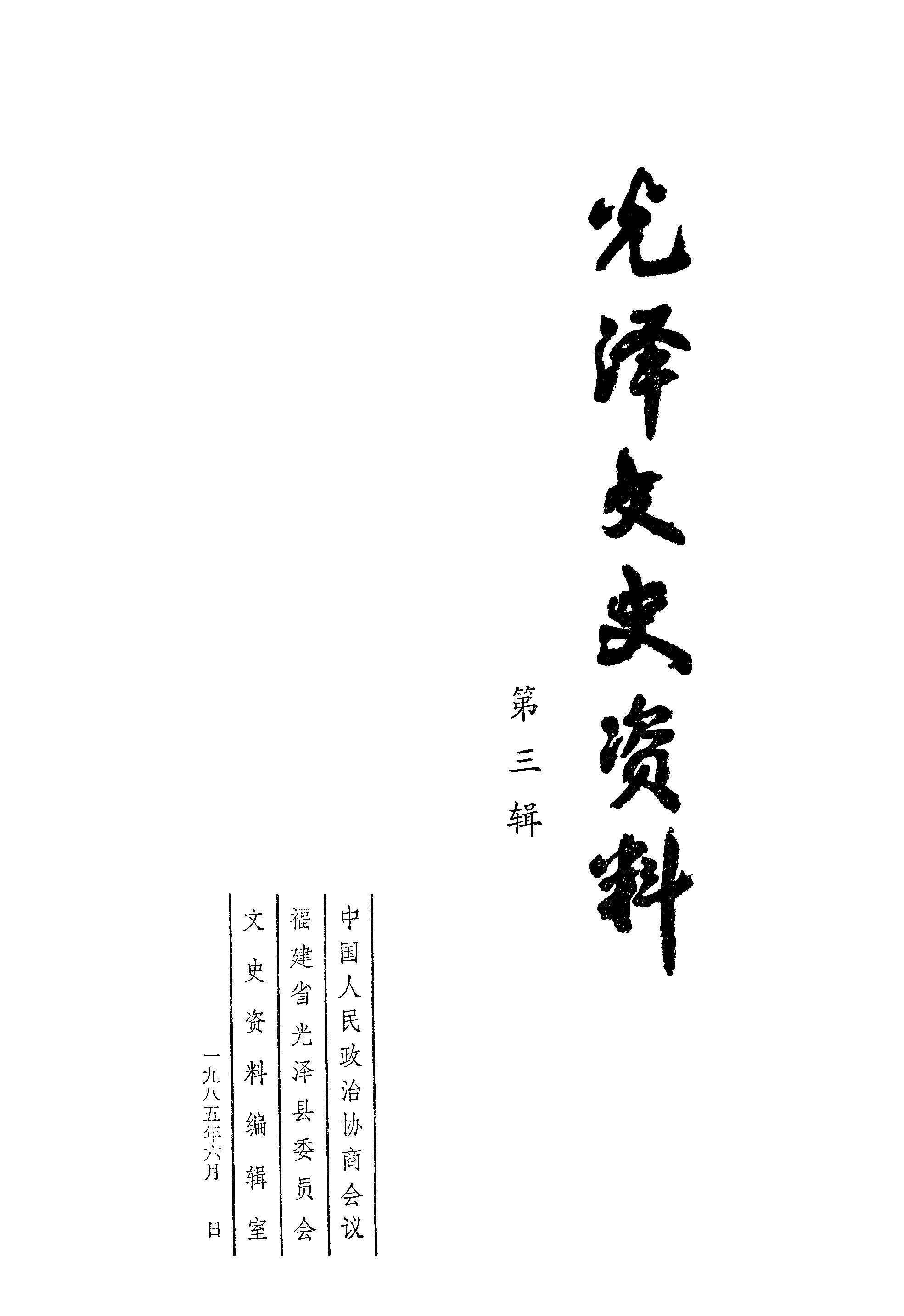 光澤文史資料第三輯_光澤縣政協文史資料編輯室光澤縣