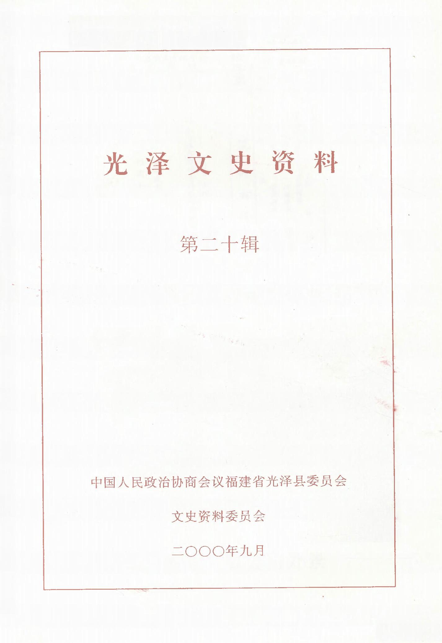 光澤文史資料第二十輯_政協福建省光澤縣委員會文史資料委員會
