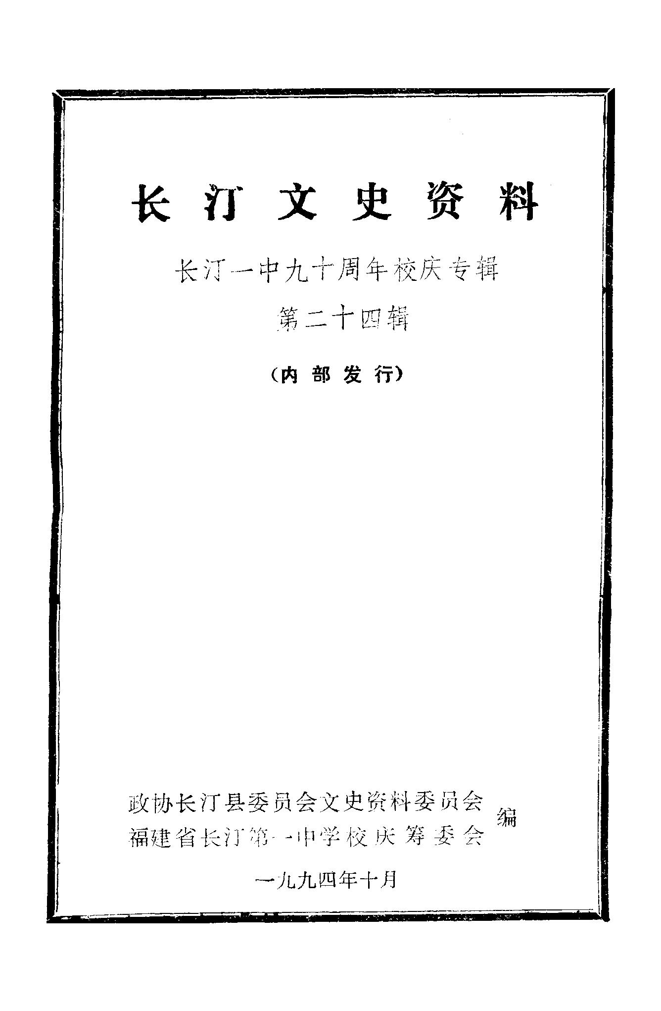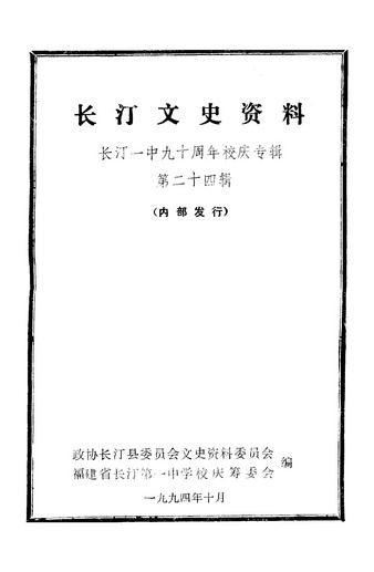 長汀文史資料第二十四輯_政協長汀縣委員會文史資料委員會福建省長汀第一中學校慶籌委會