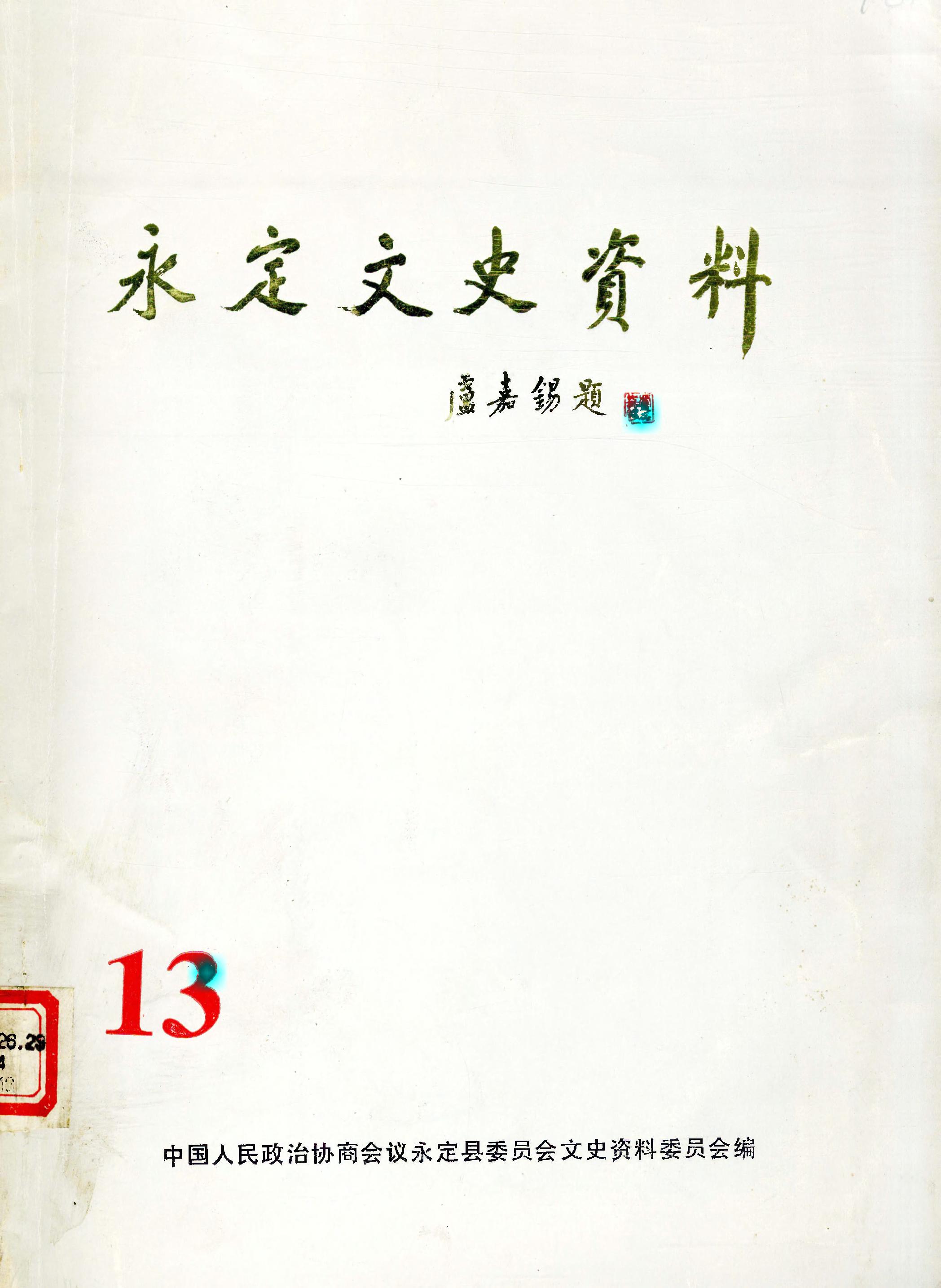 永定文史資料第十三輯_政協永定縣委員會文史資料委員會