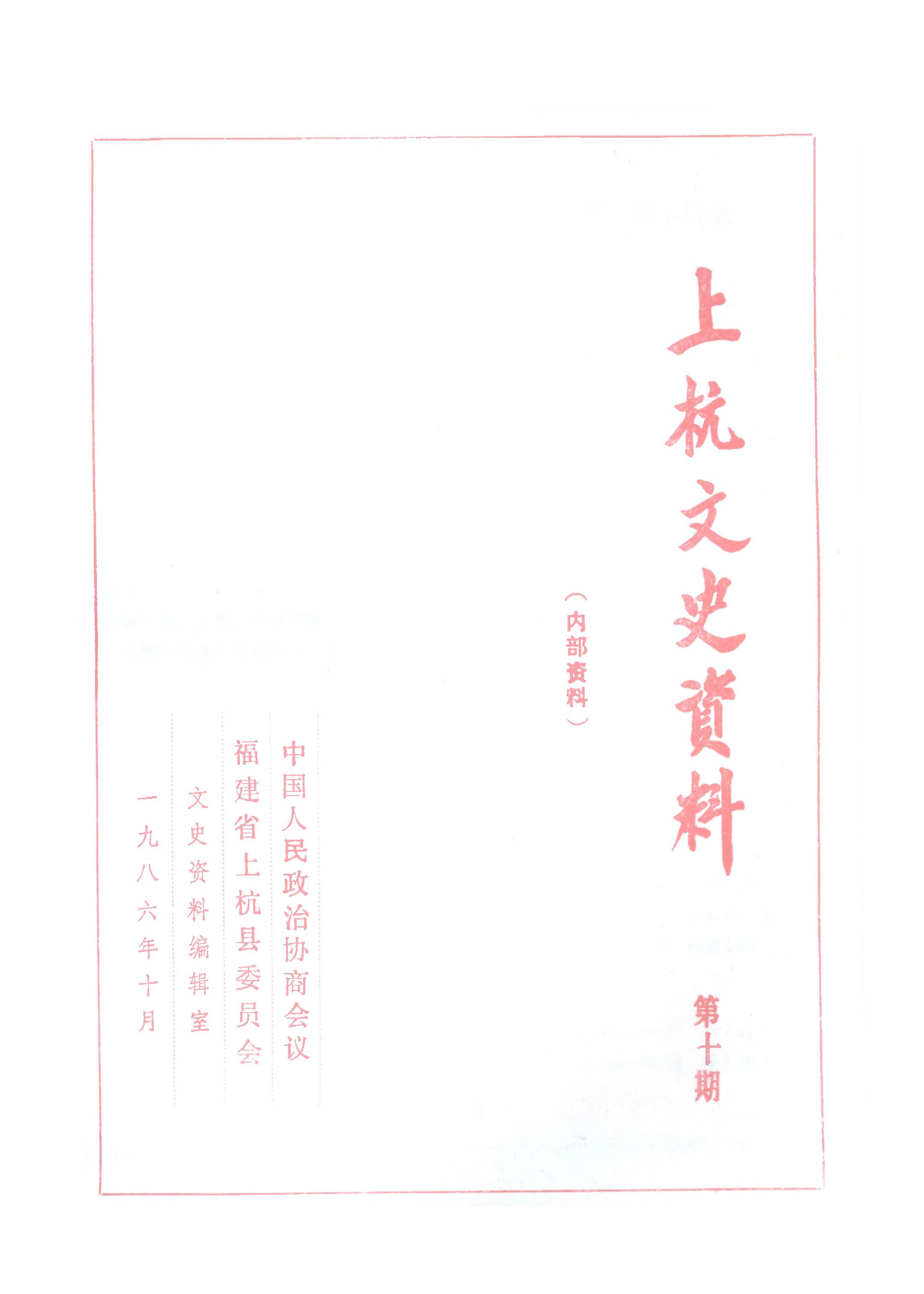 上杭文史資料第十期_政協福建省上杭縣委員會文史資料編輯室
