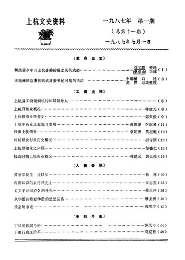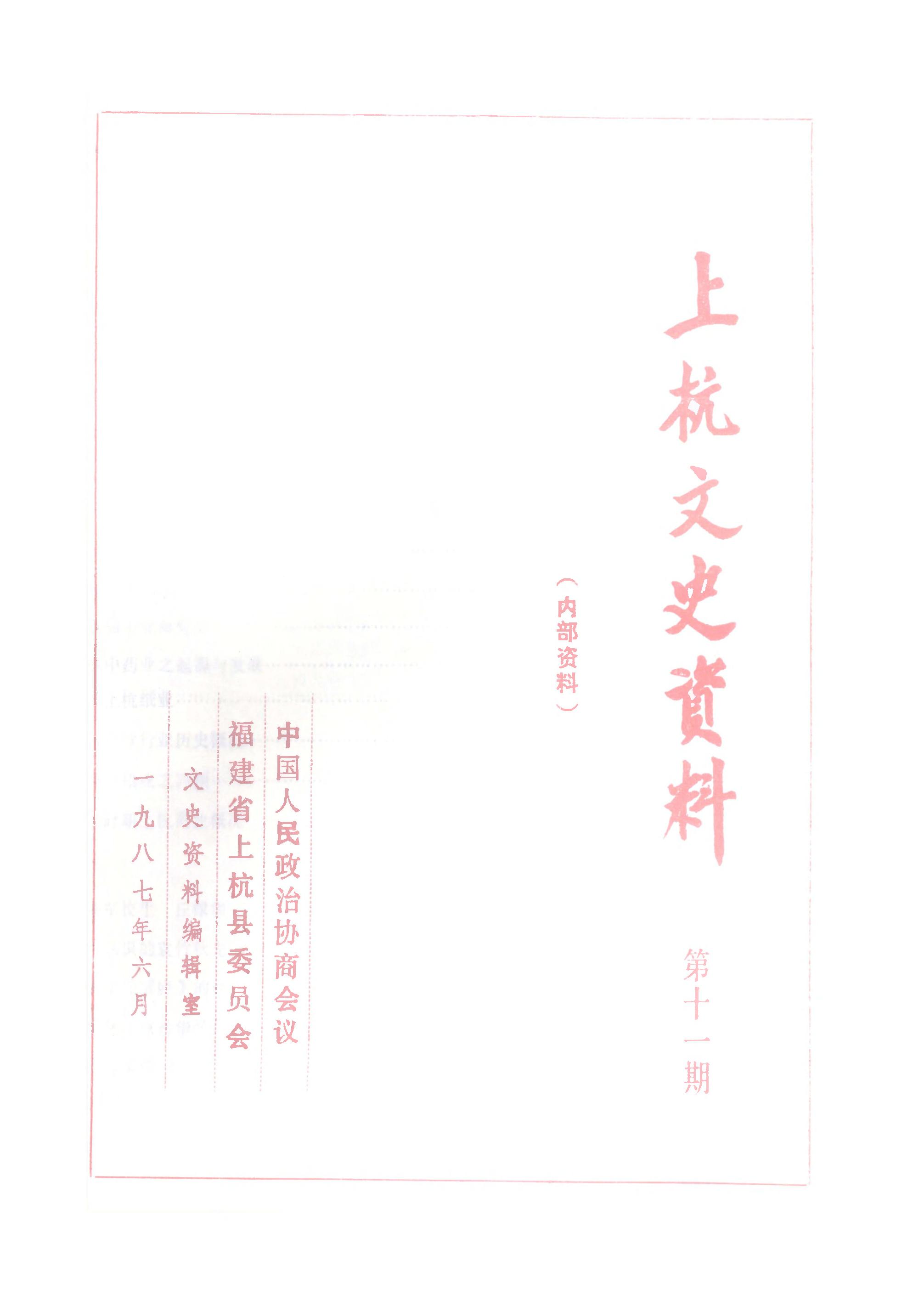 上杭文史資料第十一期_政協福建省上杭縣委員會文史資料編輯室