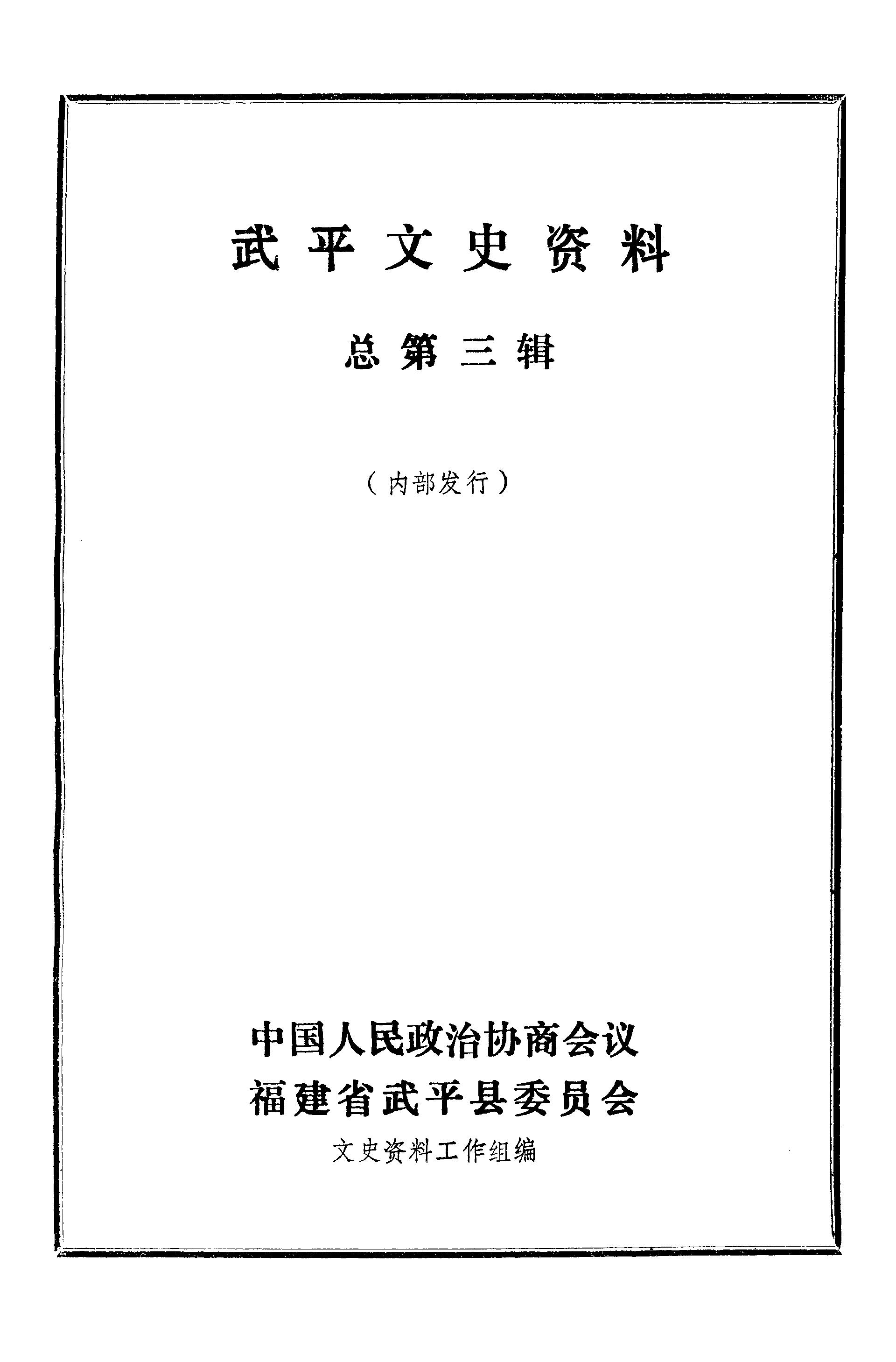 武平文史資料總第三輯_政協福建省武平縣委員會文史資料工作組