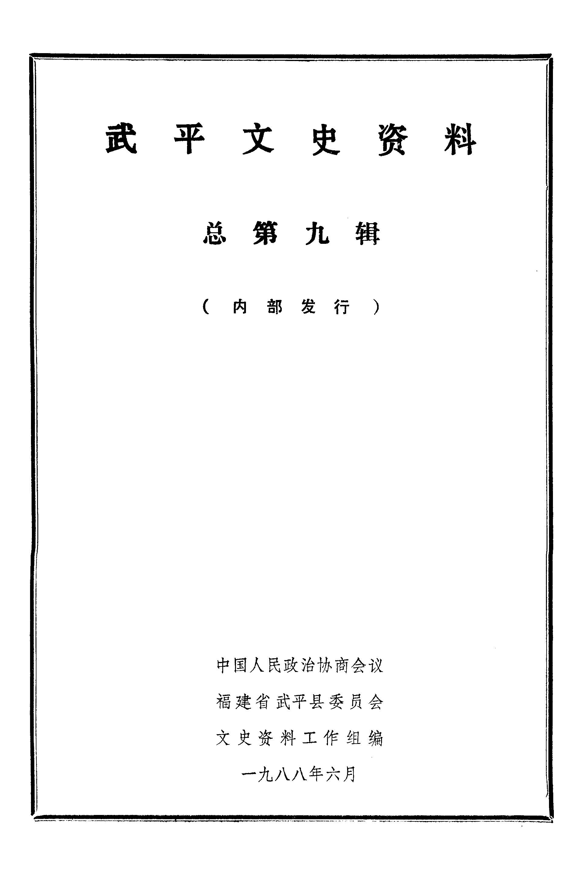 武平文史資料總第九輯_政協福建省武平縣委員會文史資料工作組