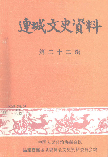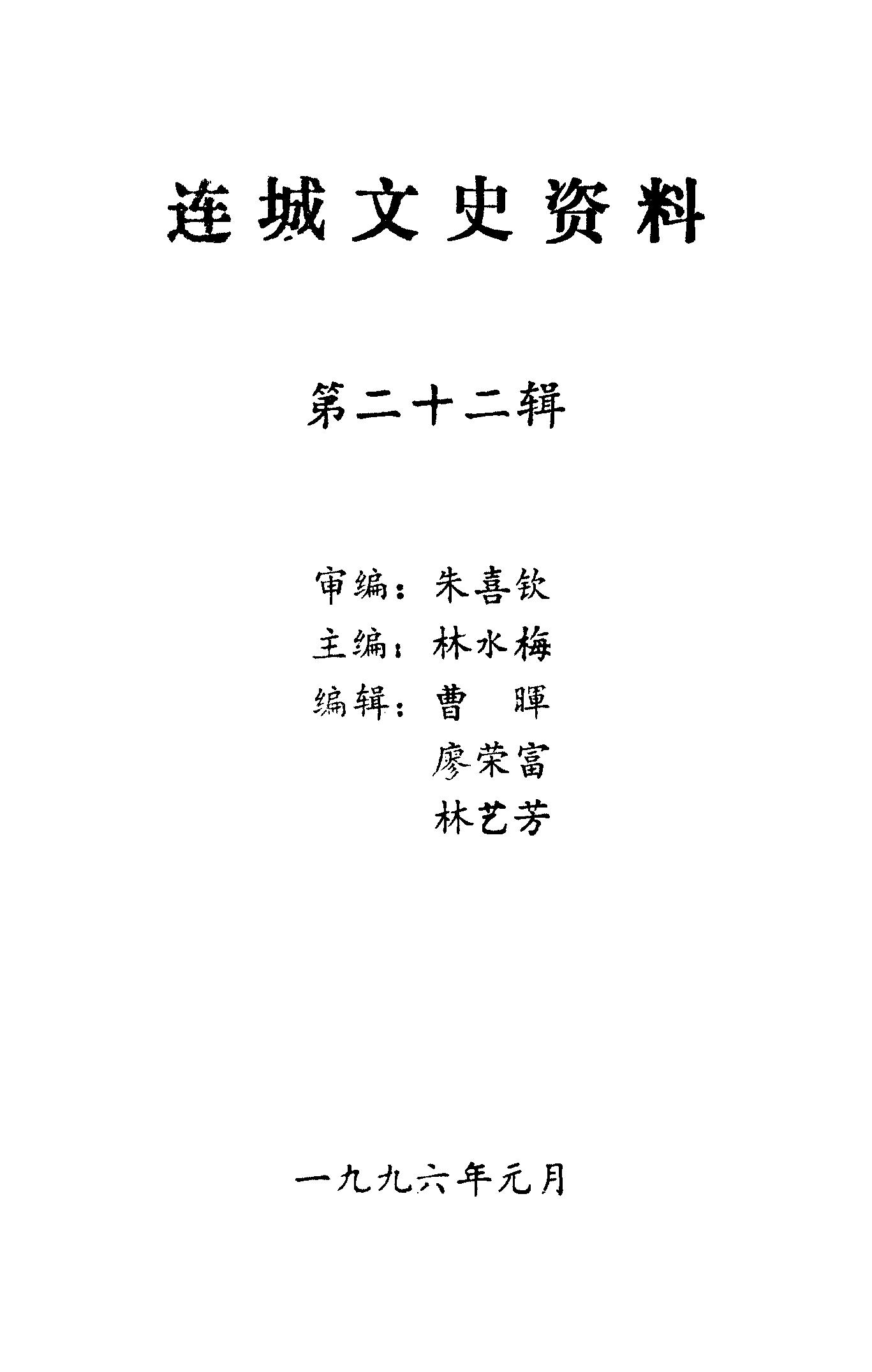 連城文史資料第二十二輯_政協福建省連城縣委員會文史資料委員會