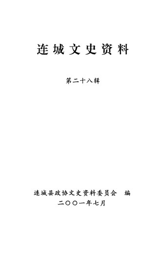 連城文史資料第二十八輯_政協福建省連城縣委員會文史資料委員會