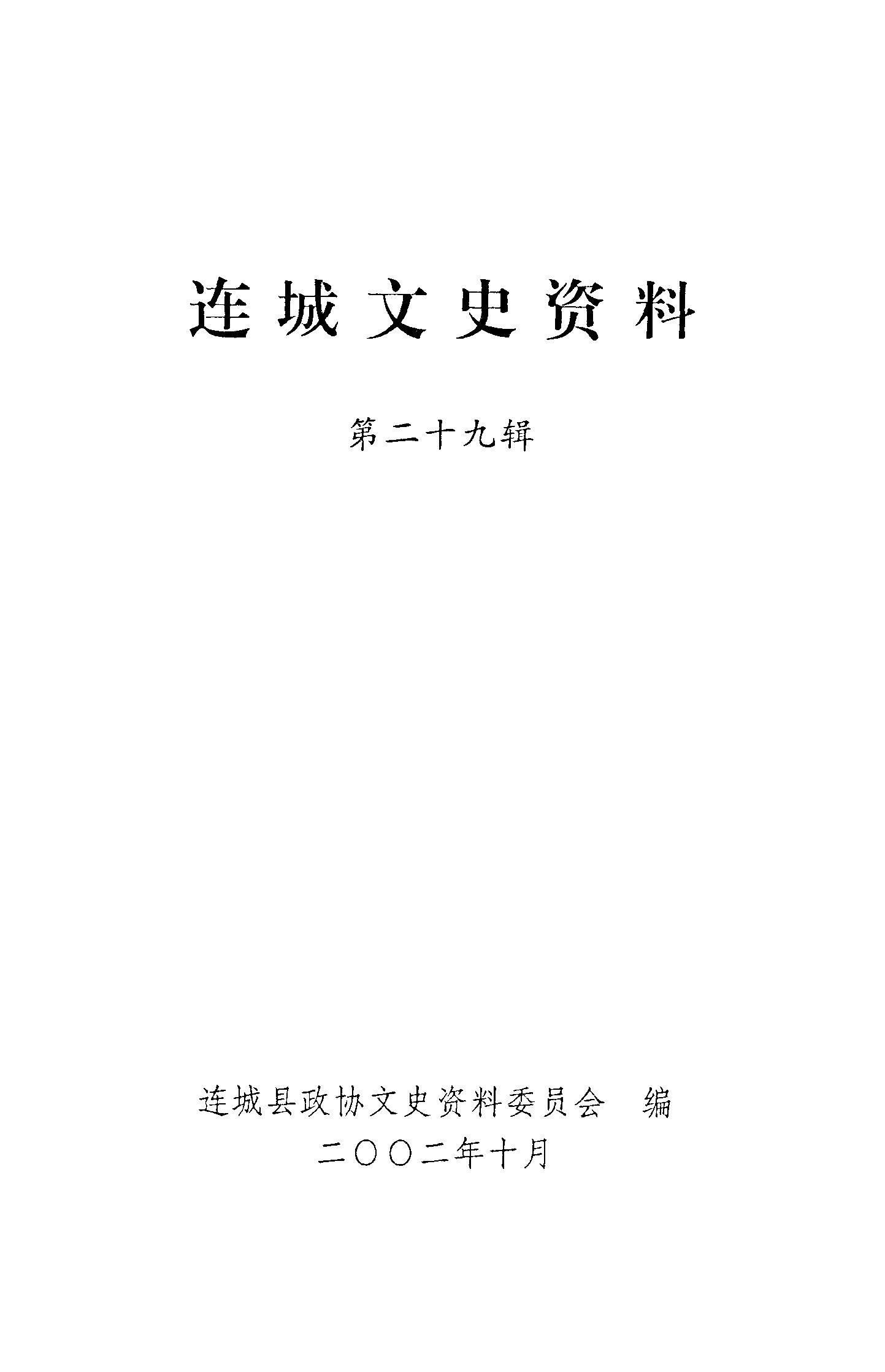 連城文史資料第二十九輯_政協福建省連城縣委員會文史資料委員會