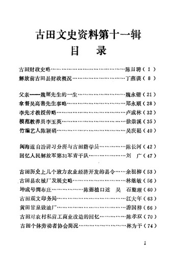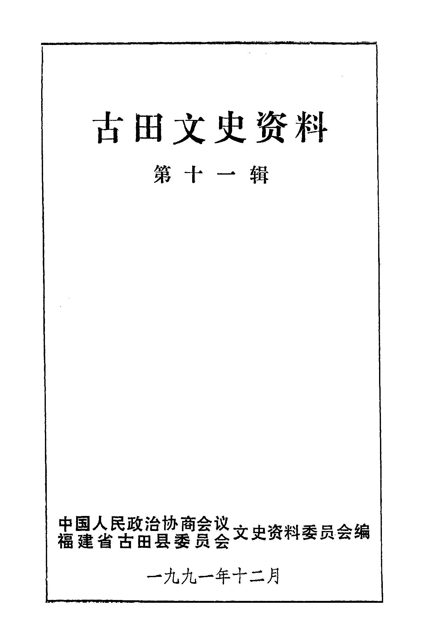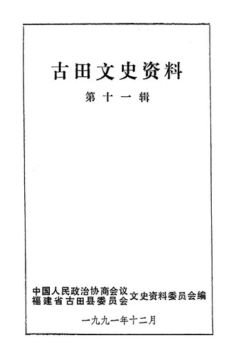 古田文史資料第十一輯_政協福建省古田縣委員會文史資料委員會