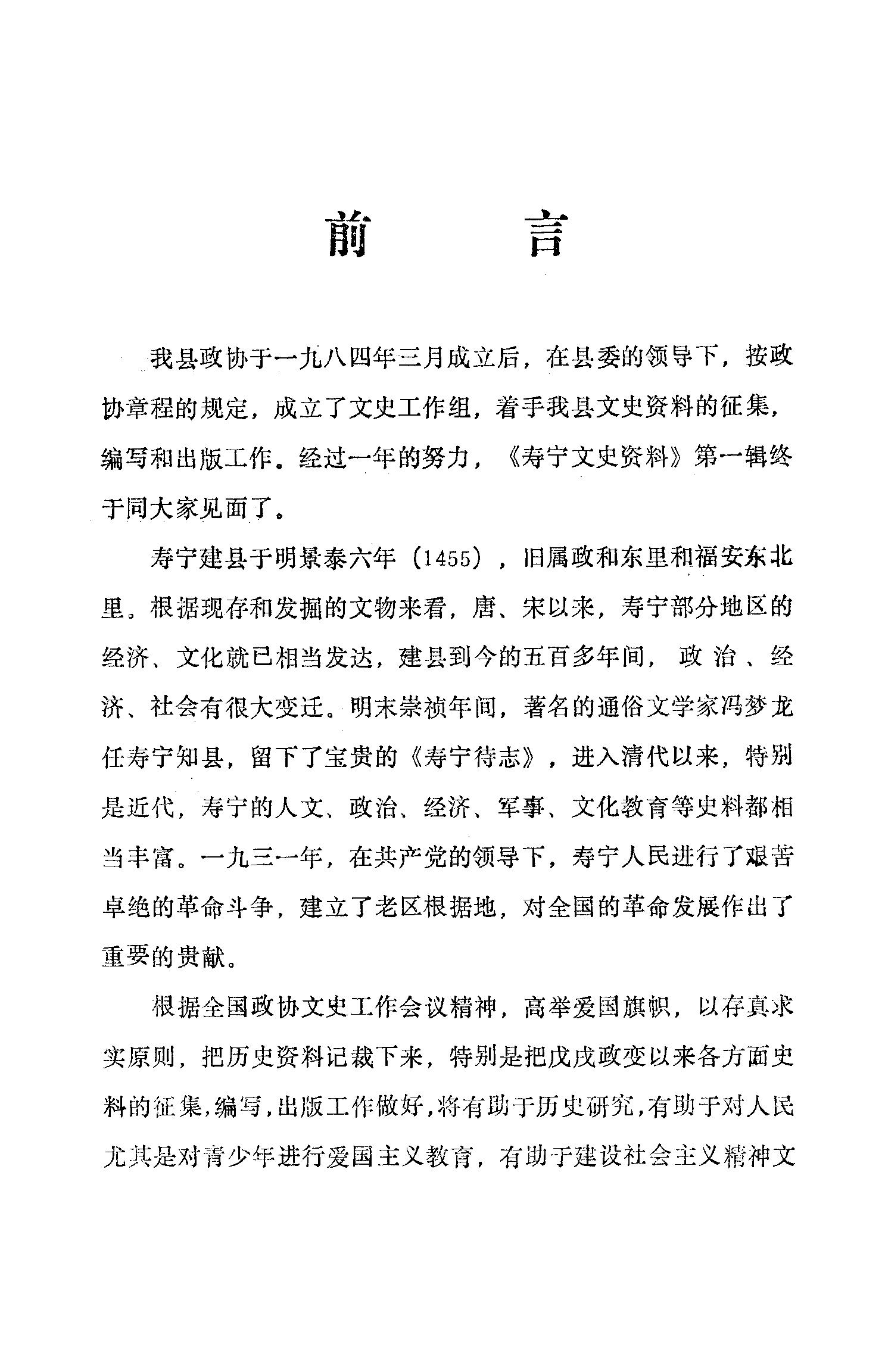 壽寧文史資料第一輯_政協福建省壽寧縣委員會文史資料編輯室